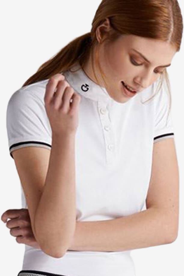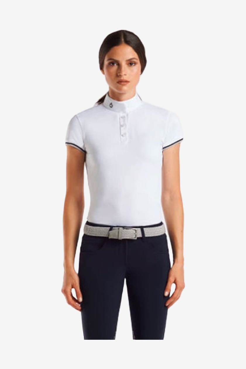 En utroligt flot træningstop fra Cavalleria Toscana med korte ærmer. Hele toppen er stretchy og i et funktionsmateriale, der ånder og holder dig tør. Lukkes med knapper foran som en sporty detalje. Logo på kraven i kontrastfarve. Ærmet afsluttes med striber i olivengrøn/marine/hvid.