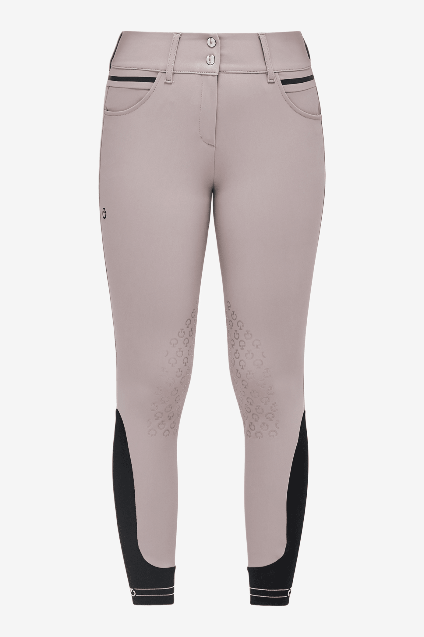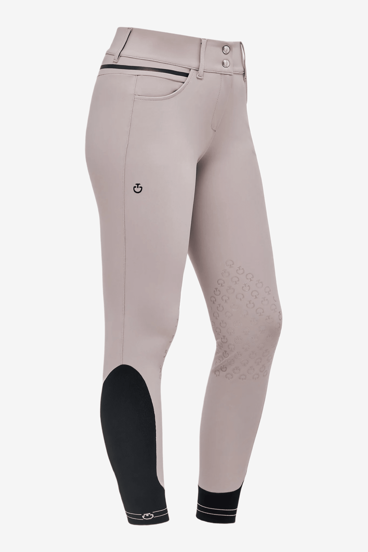 Populære ridebukser med knæforstærkning i grip fra Cavalleria Toscana i en klassisk beige/grå nuance. Lukkes med to knapper og er lidt højere i taljen, hvilket giver en fantastisk komfort. På indersiden af taljen er der en kant med ekstra grip, der holder trøjen under på plads og forhindrer også bukserne i at "skride rundt". Elastisk benafslutning i lycra, der giver behagelig komfort under ridestøvlen. Flot detaljeret med et sort bånd dekoreret med en skrevet logo.