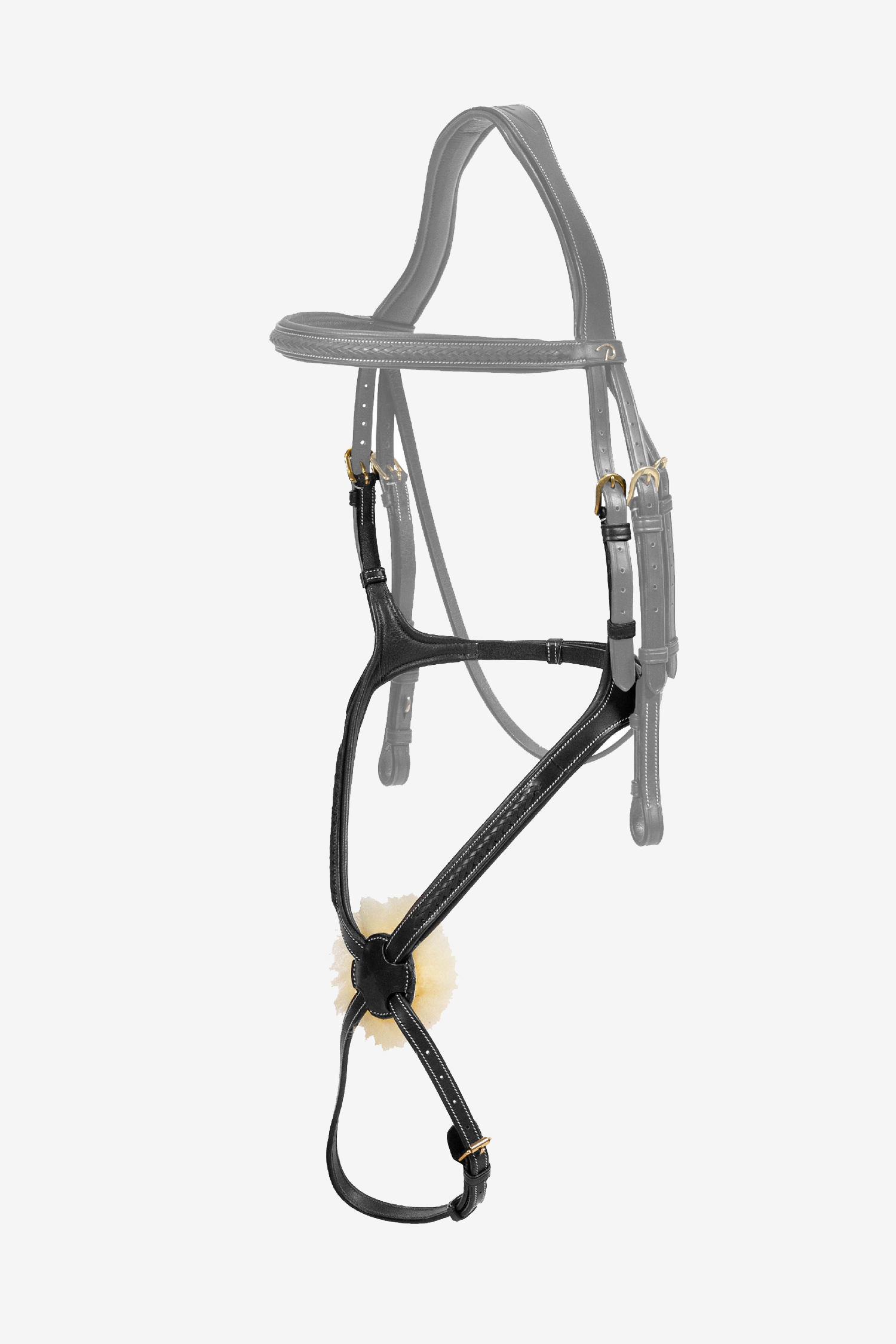 De flettede læderdetaljer giver et eksklusivt og elegant udtryk, mens messingspænder og cremefarvede kontrastsyninger skaber en sofistikeret finish. Perfekt til både træning og konkurrence – for ryttere, der værdsætter kvalitet, design og komfort i hver detalje.