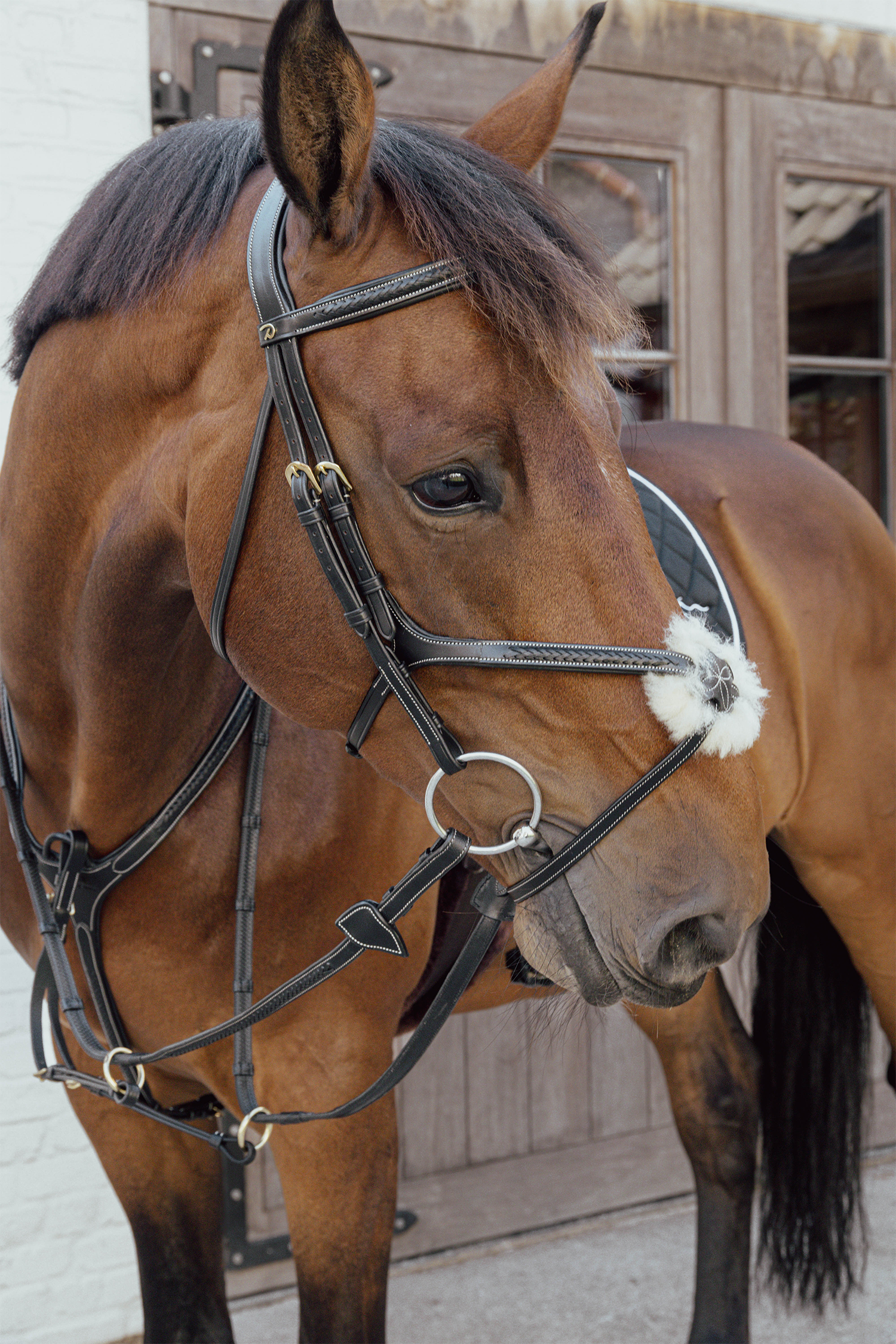 Et klassisk og ergonomisk designet næsebånd, der forener elegance, komfort og kontrol – skabt til rytteren, der ikke går på kompromis med kvalitet.