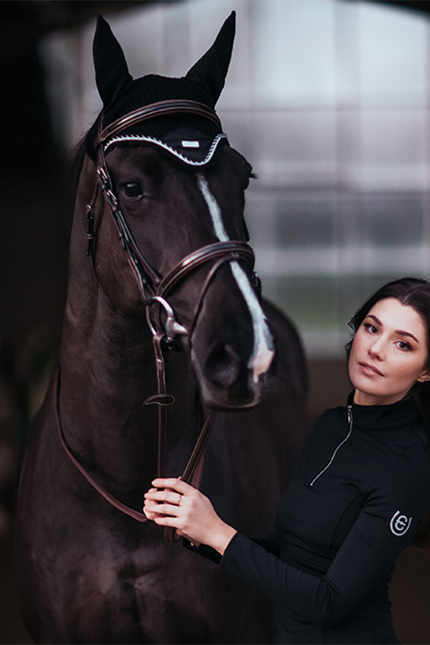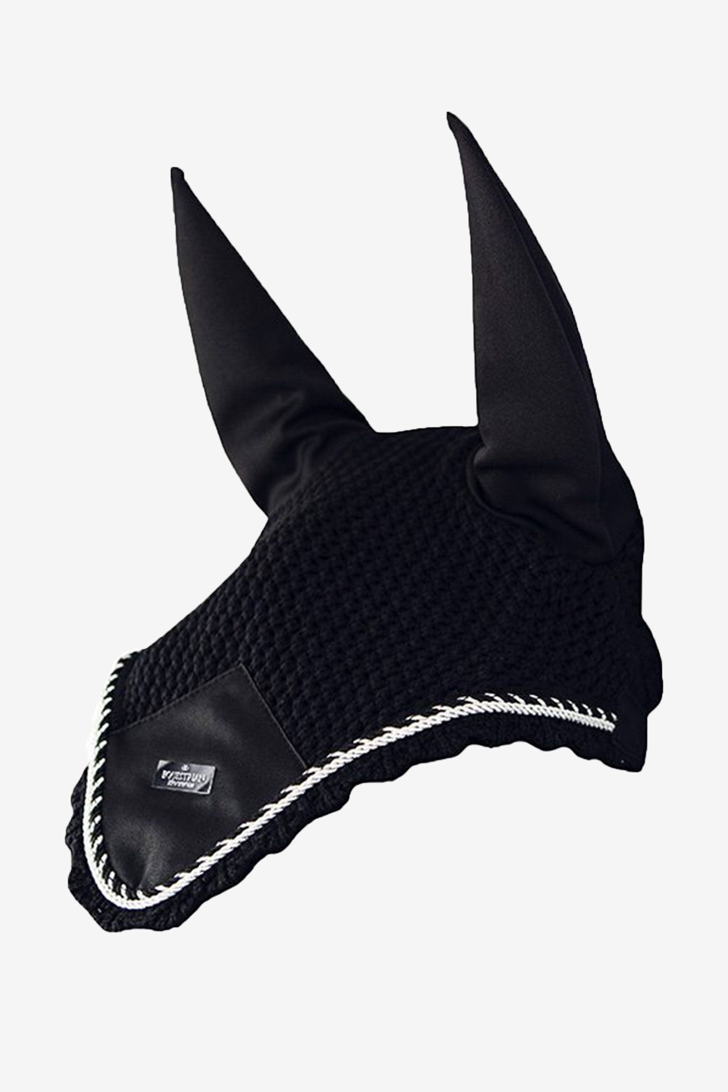 Hæklet hue i luksuriøs sort med stilfulde detaljer i sort og sølv. Huen har elastisk stof ved ørerne for at mindske risikoen for skav. Beskytter din hest mod både insekter og støj. Match med andre produkter fra samme kollektion for det ultimative look.