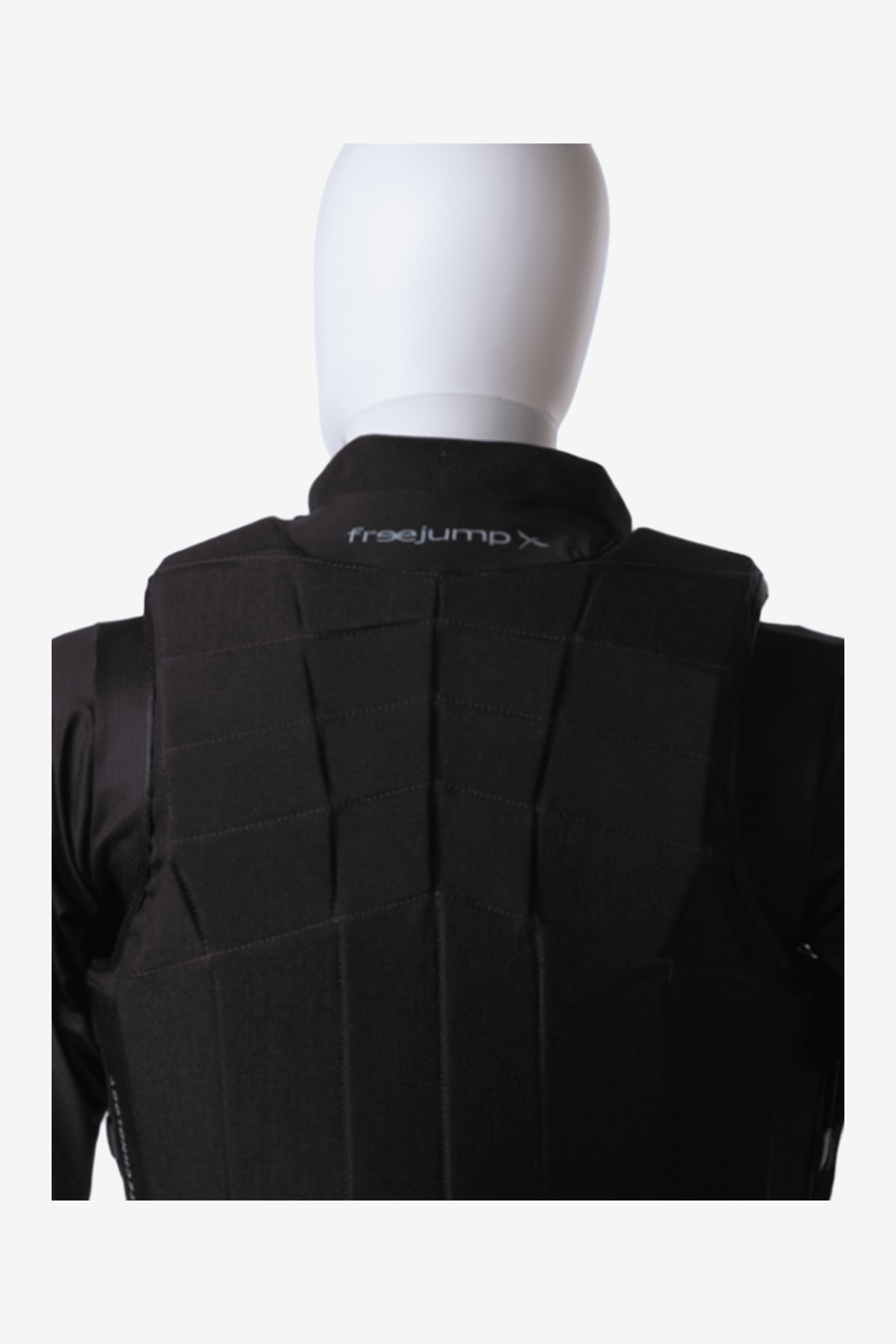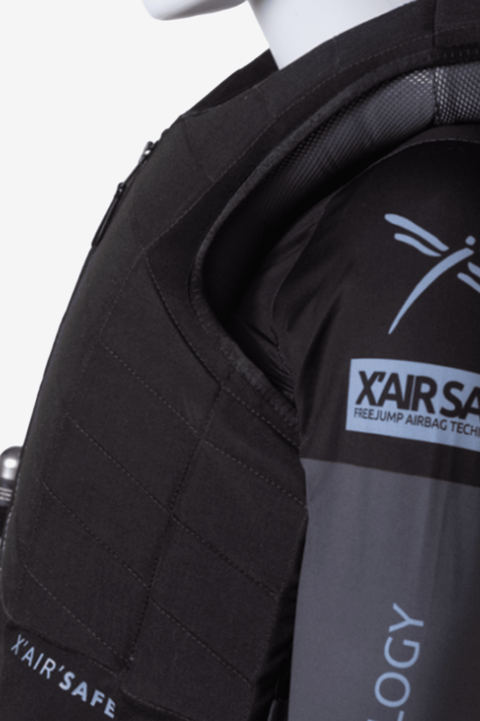 Freejumps nye XAir Safe vest er et tegn på høj sikkerhed og innovation. Vesten har en unik 2-i-1 løsning. Yderskallen er udstyret med beskyttende paneler, og indvendigt, tættest på kroppen, findes der også air paneler, som pustes op ved aktivering.
