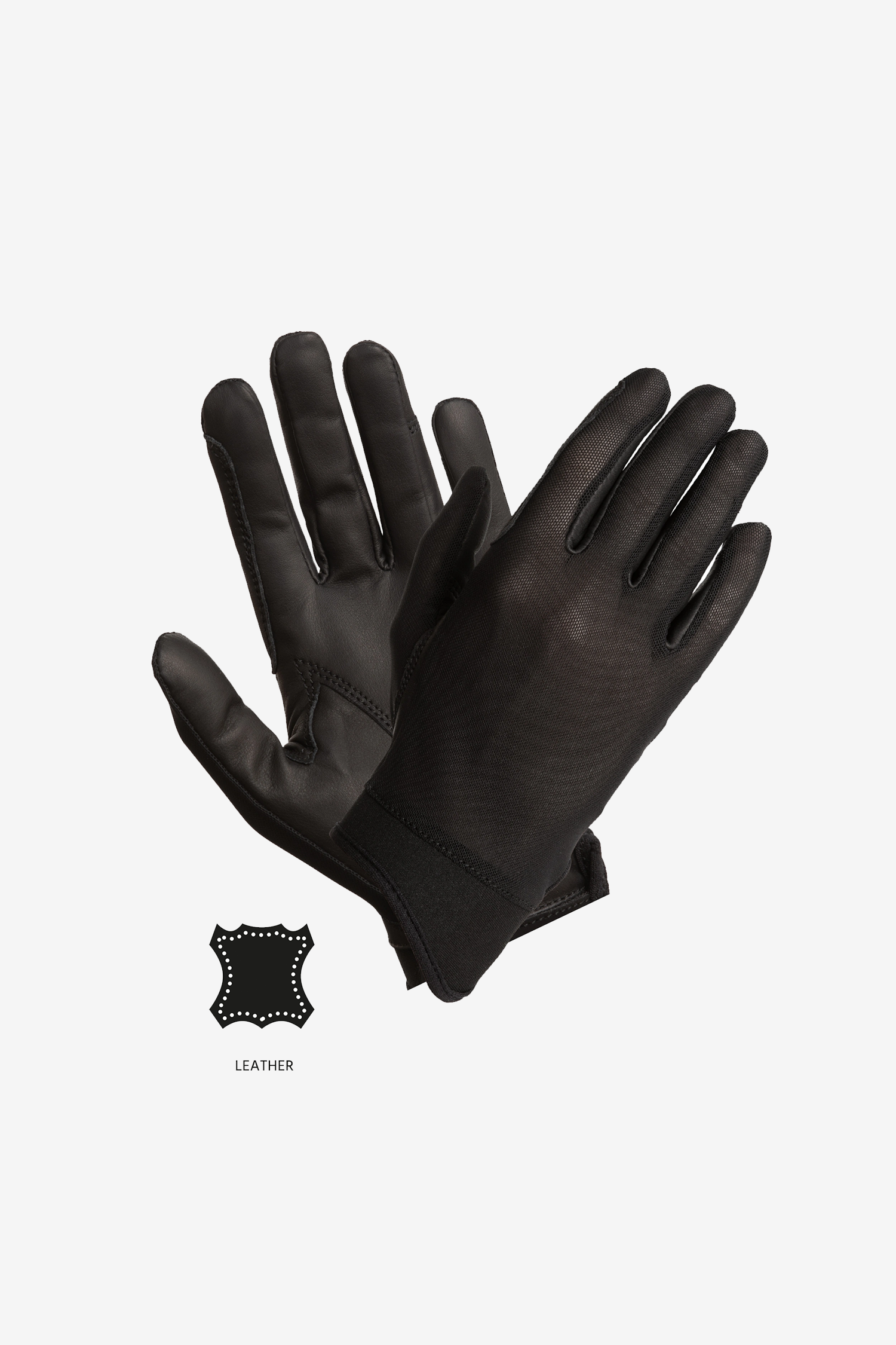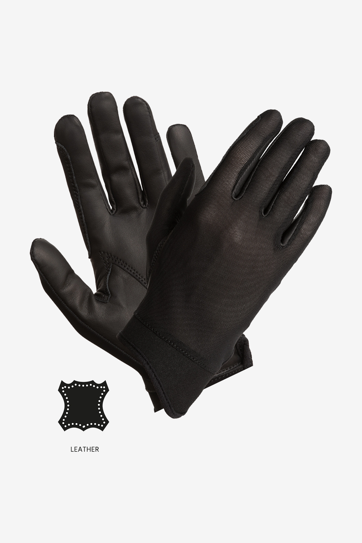 Fremstillet i ægte, ekstra blødt skind for en smidig fornemmelse og maksimalt greb om tøjlerne. Oversiden i strækbar airmesh (nylon/spandex) giver optimal ventilation og bevægelsesfrihed, så dine hænder holdes kølige selv under intense rideture.
