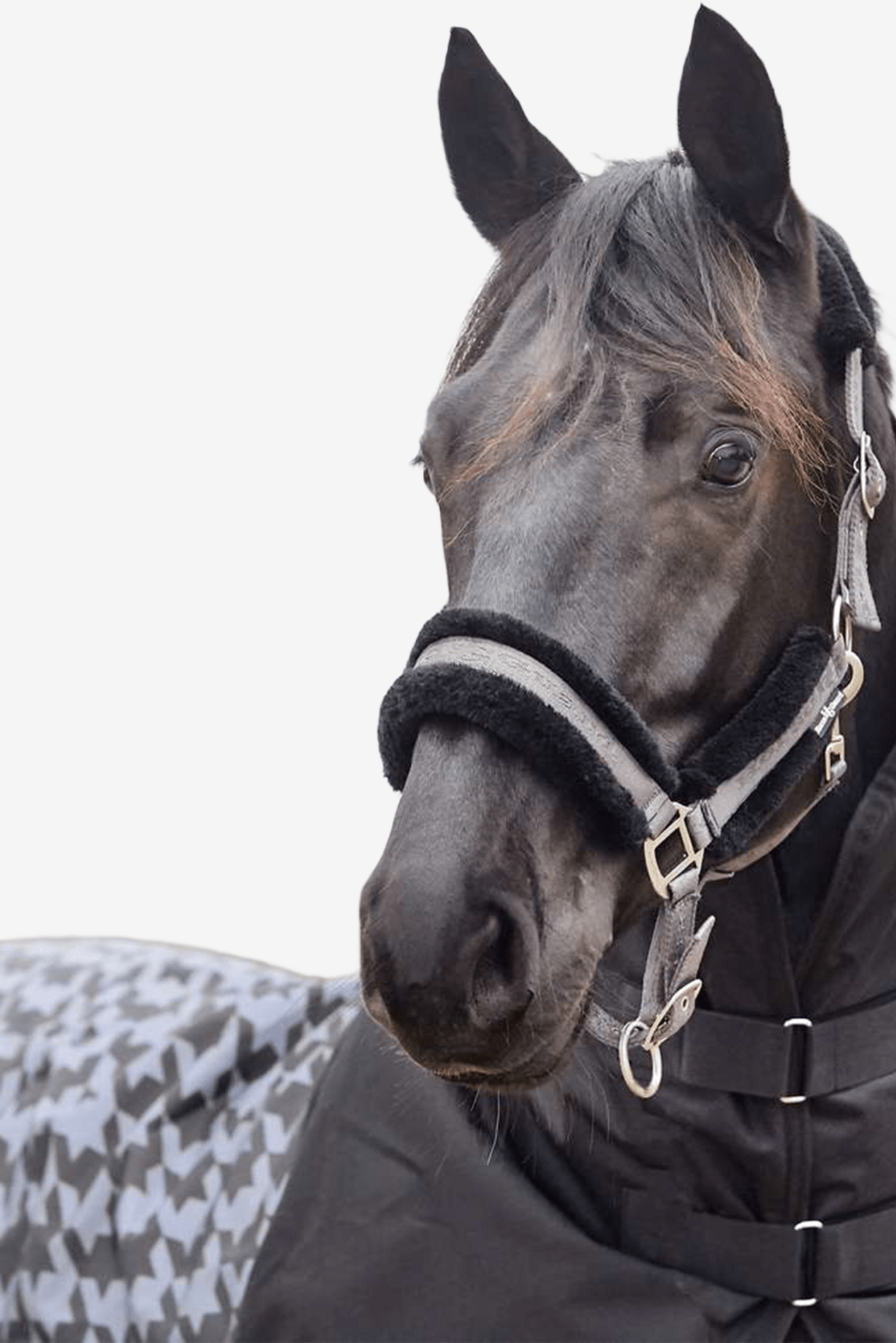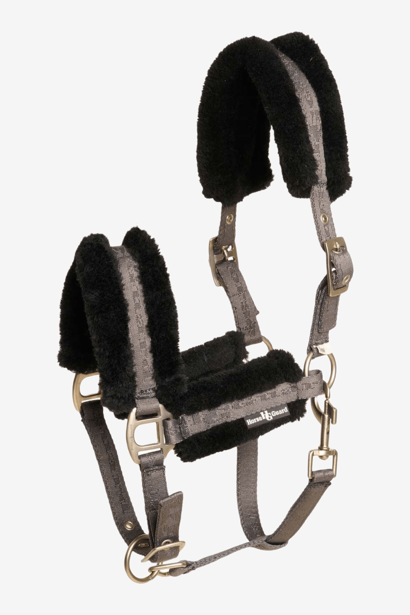 Herlig grime fra Horse Guard med ludd for at mindske skav mod hesten. Grimen kan nemt justeres på begge sider af nakken samt under hagen. Horse Guards logo er flot indvævet i stoffet. Metalspænder i gråt.