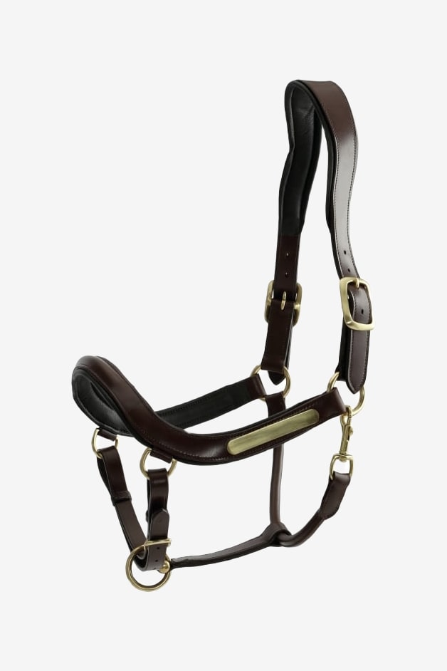 Gjord af et blødt og slidstærkt læder fra Horse Guard med messing spænder. Anatomisk udformet for at mindske tryk på hestens hoved. Plade til gravering.