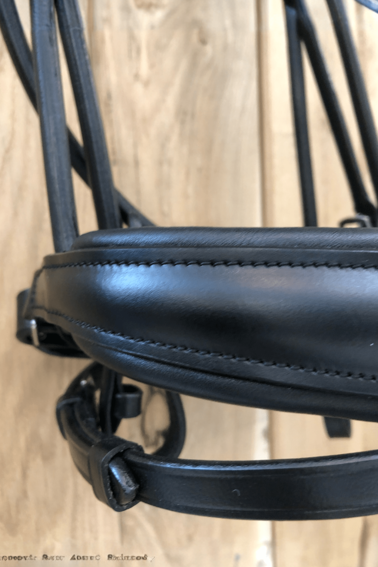 Horse Guard rundsyet trense med pull-back lukning. Vatteret næsebånd med aftagelig næserem. Buet pandebånd med sølvsten. Anatomisk nakkestykke med blød polstring for perfekt pasform og komfort.