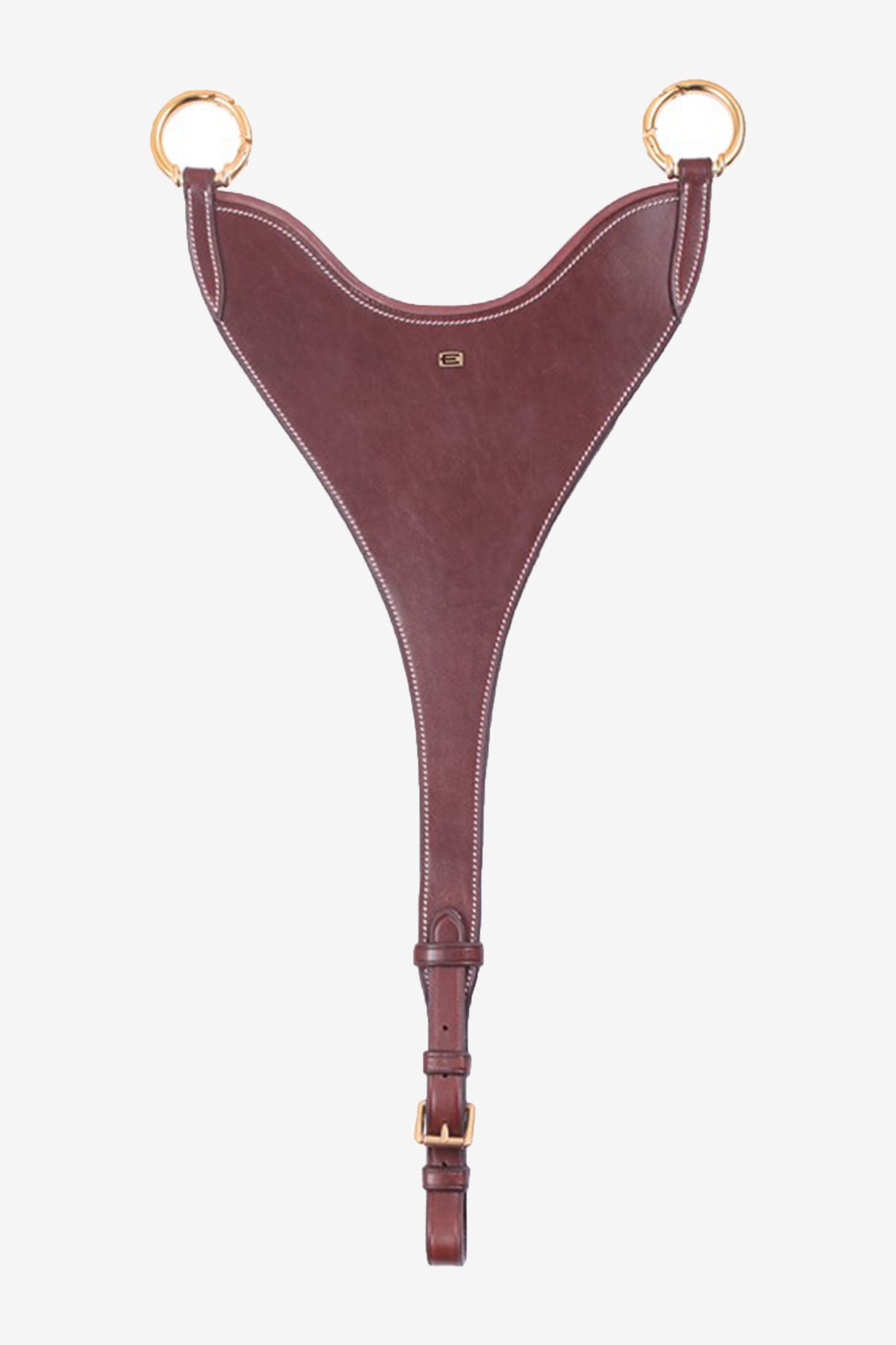 Kort martingal BIB, som er justerbar, fremstillet i eksklusivt italiensk læder med hvide syninger og messingspænder.