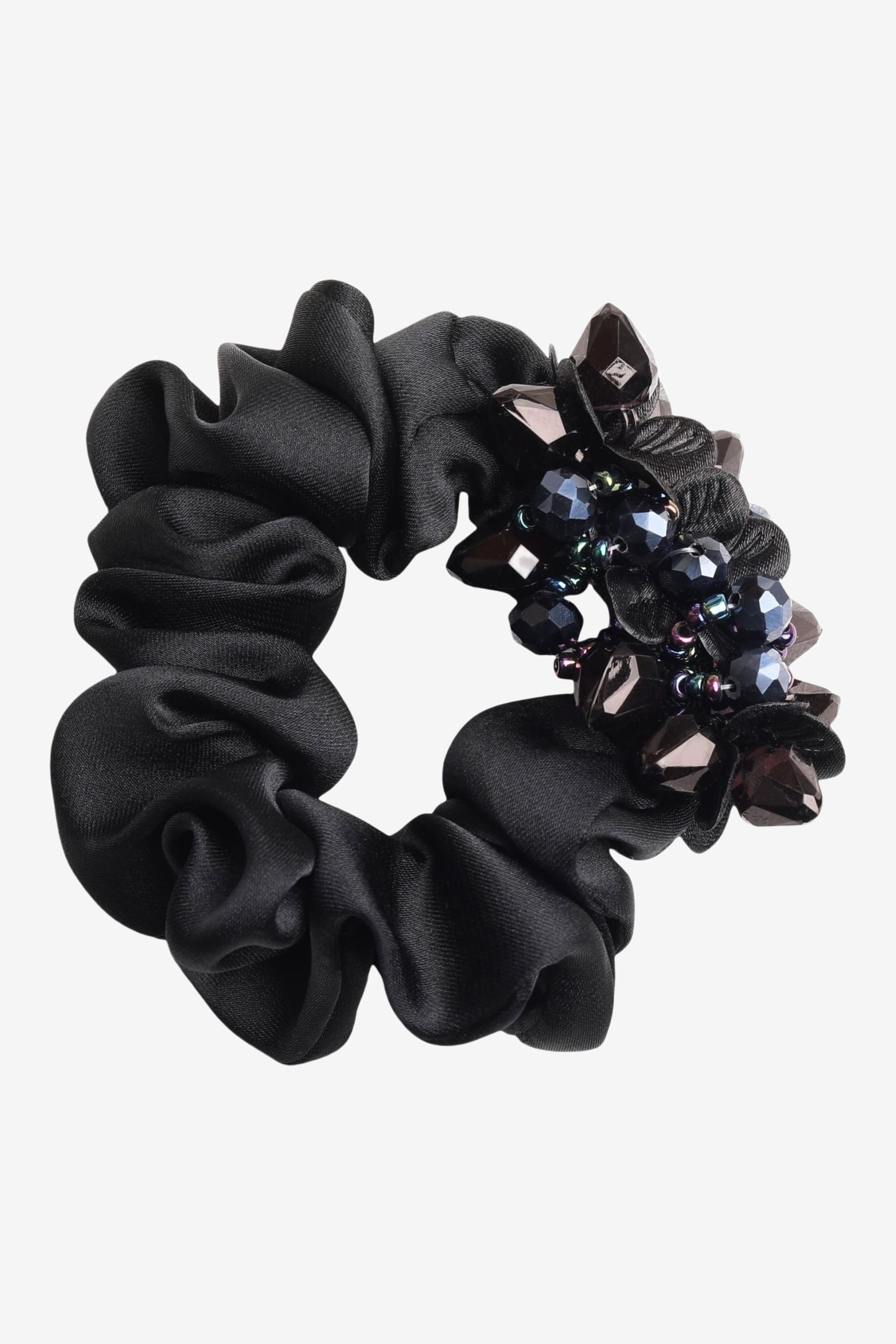 Med detaljer af sten og perler samt satinmaterialet giver denne hårelastik dig et meget elegant look. Giv din knold den lille ekstra touch, der løfter den til næste niveau.