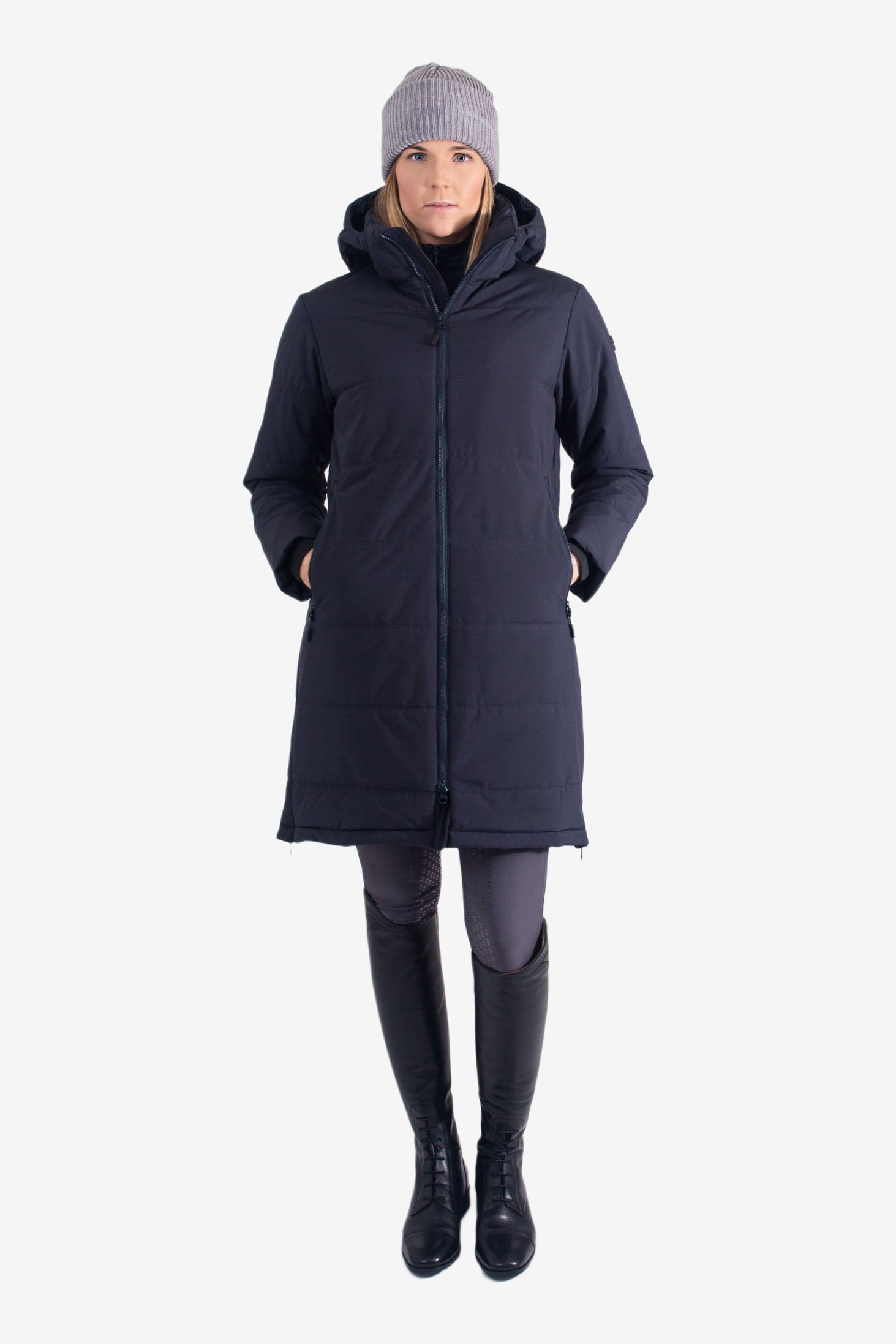 Vinterridekåbe med ekstra varm 3M™ Thinsulate™ letvægtsvattering. Beskytter dig mod sne, regn og vind, samtidig med at fugt og overskudsvarme hurtigt kan fordampe. Et slidstærkt, vandafvisende og vindtæt plagg med høj åndbarhed og dunfri, ekstra varm letvægtsvattering, der holder dig komfortabel selv på de koldeste dage. Den perfekte kåbe til trænere og frosne ryttere!