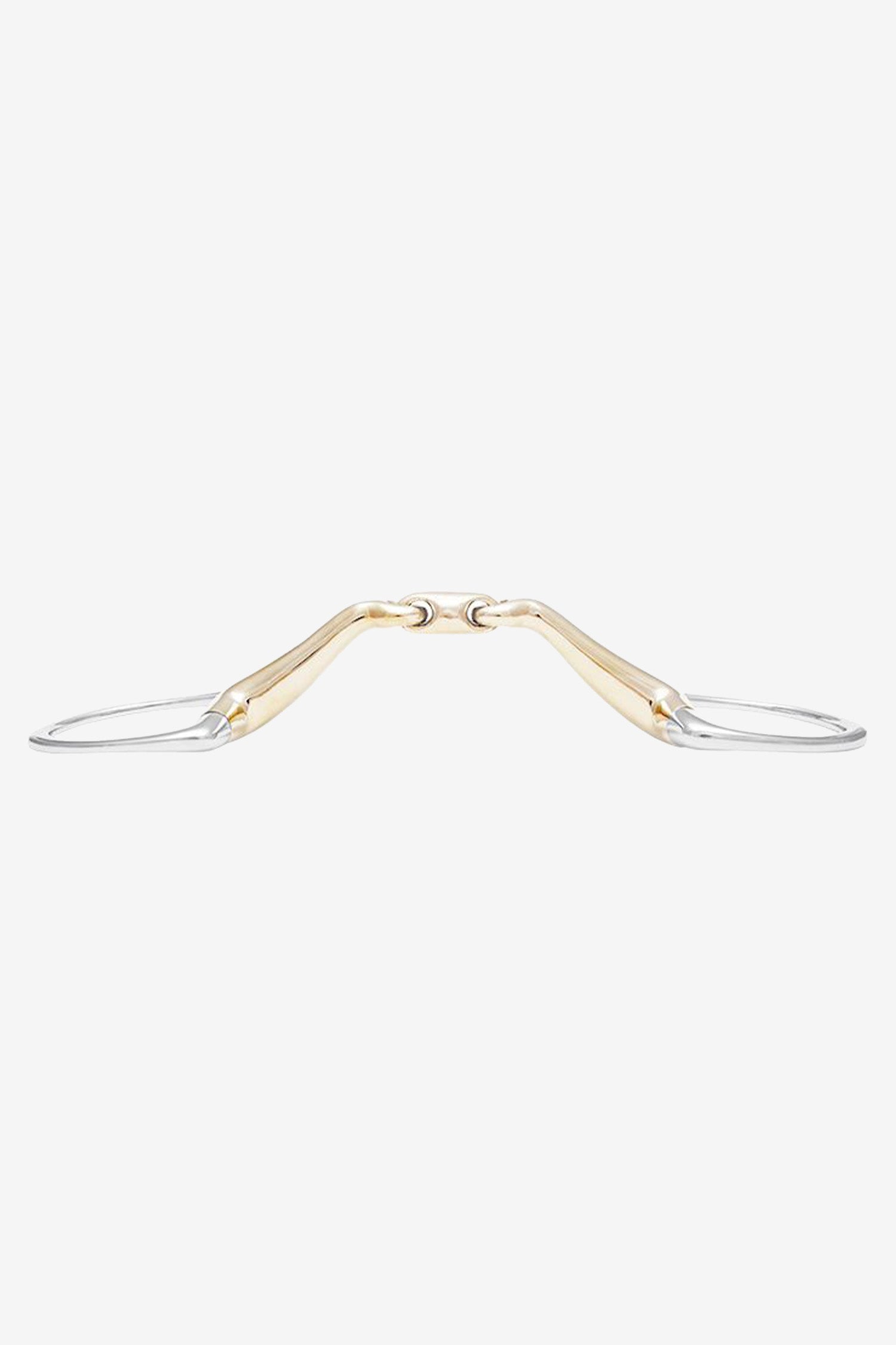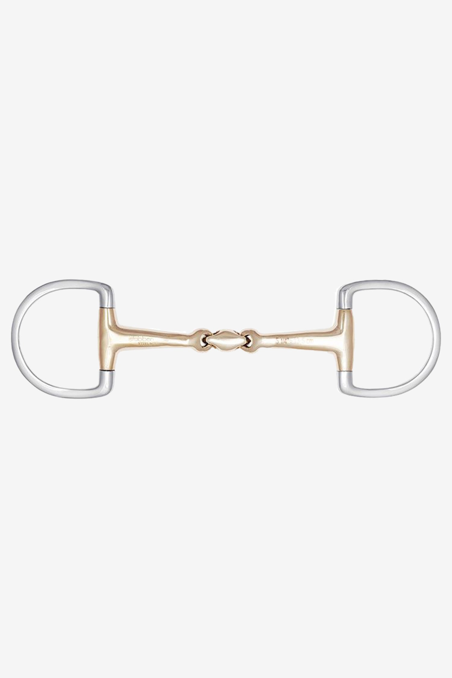 De faste D-ringe hjælper med at holde biddet stabilt i munden og giver let sidestøtte, hvilket gør det nemmere at stille og indramme hesten. Den tredelte munddel fordeler trykket jævnt over tunge og laner, hvilket giver en blid men tydelig indvirkning, der passer til de fleste heste.