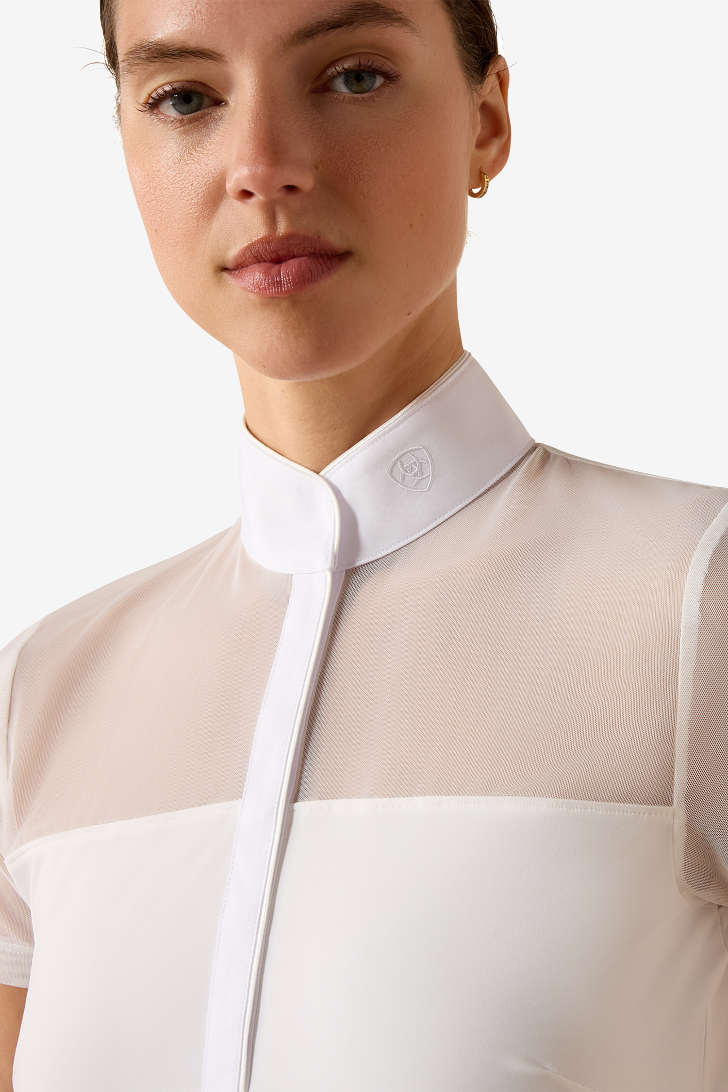 Ventilerende meshpaneler over bærestykket forbedrer luftcirkulationen og øger komforten. Konkurrencetrøjen er udstyret med løkke til plastron og passer til spring, dressur og military.