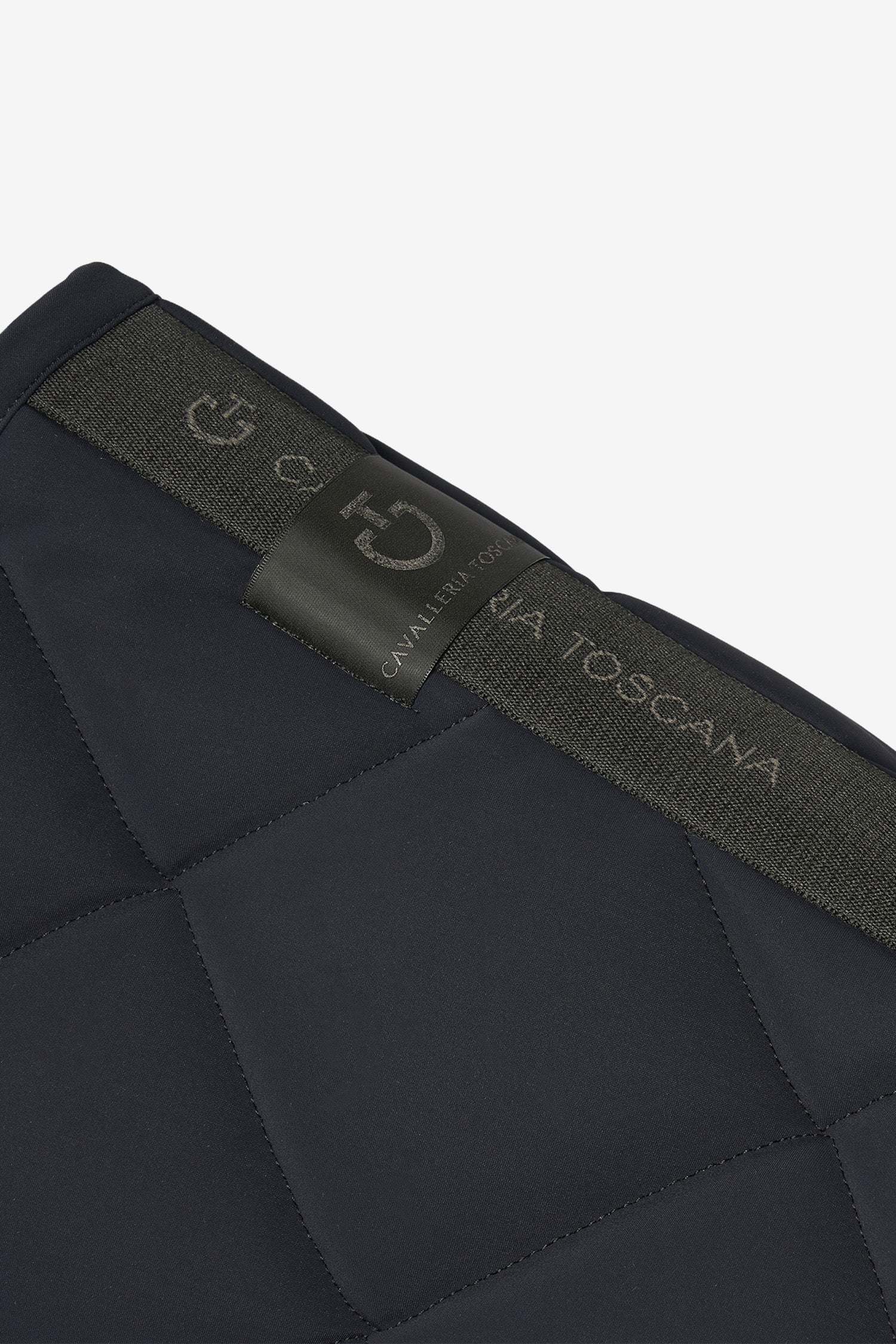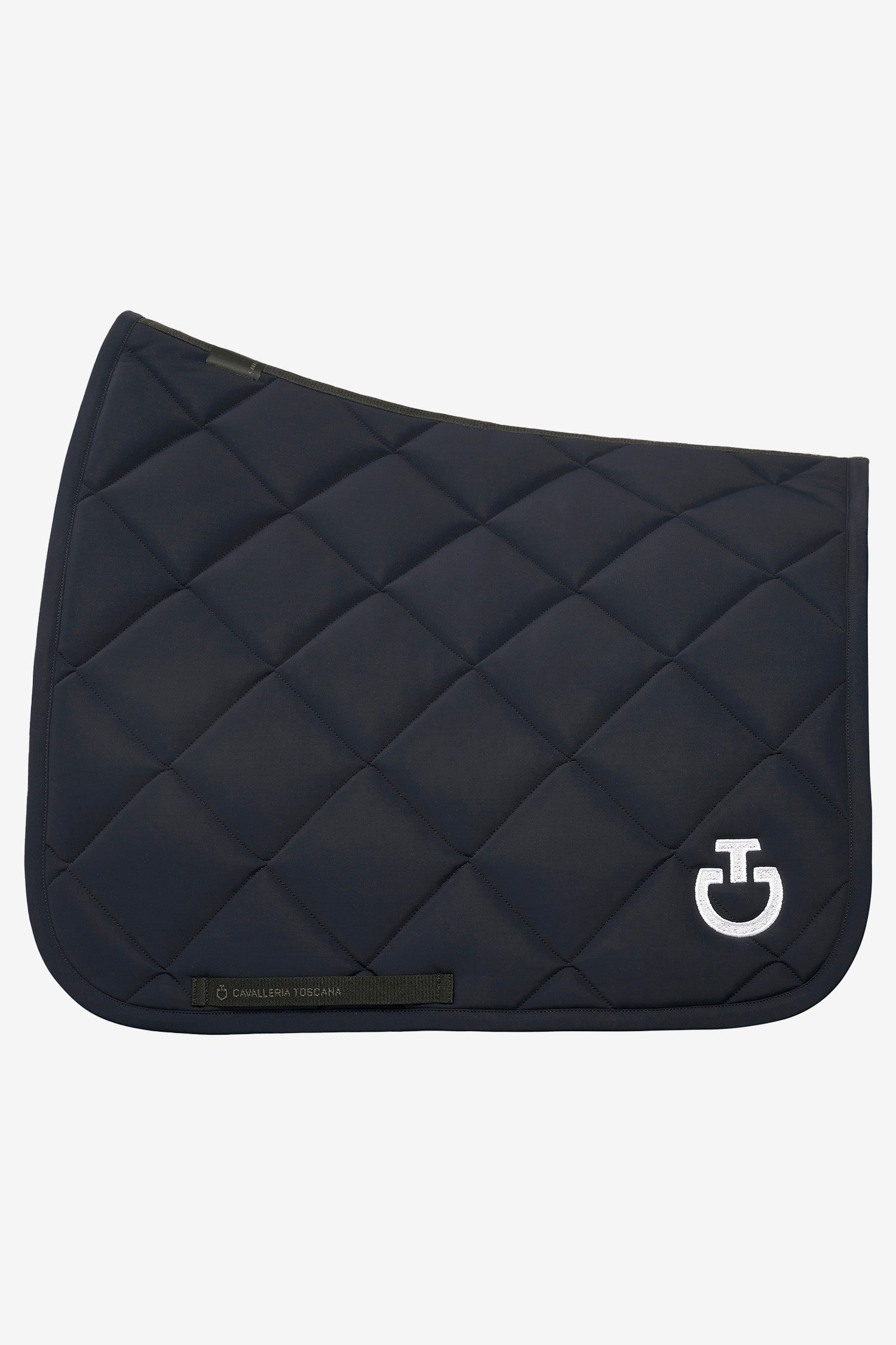 Cavalleria Toscana Diamond Quilt Dressurunderlag i farven Navy kombinerer italiensk design med høj funktionalitet. Det diamantquiltede mønster giver et eksklusivt udtryk, samtidig med at det bidrager til jævn trykfordeling og optimal komfort for din hest under ridningen.
