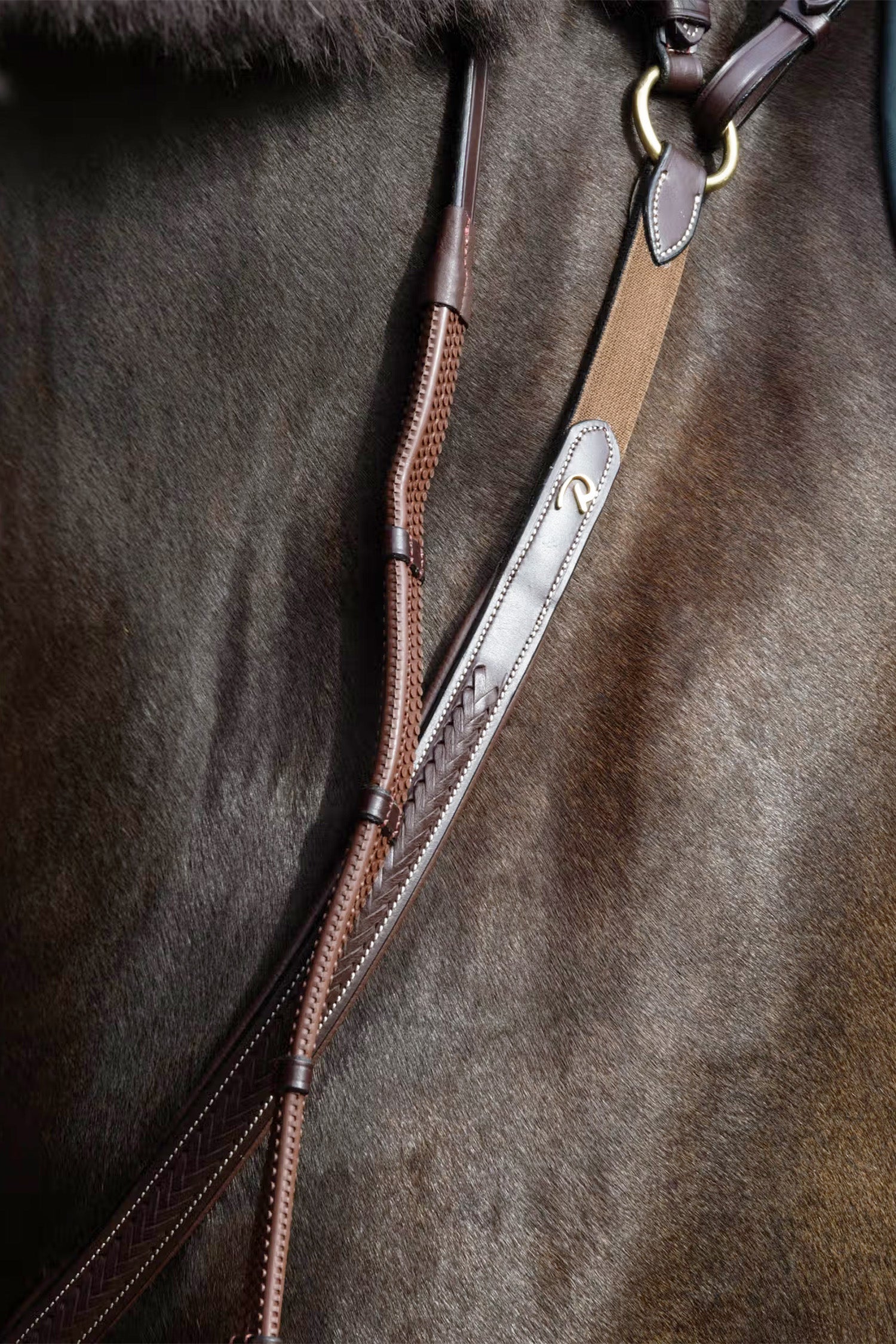 Flettet fortøj med bro fra den eksklusive Dyón Collection, et fortøj der kombinerer funktionalitet og klassisk elegance. Det er håndlavet i førsteklasses europæisk læder og har et stilfuldt flettet design, der giver et sofistikeret og luksuriøst udtryk.