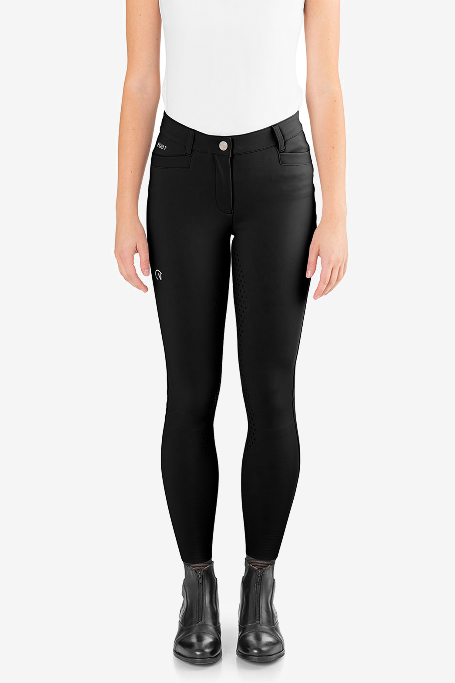 Materialet er fremstillet i Italien og giver en perfekt pasform med firevejsstretch for ubegrænset bevægelsesfrihed, støtte og fastholdelse af formen. En sjælden komfort, god åndbarhed og bedre kontakt med hesten under ridning.