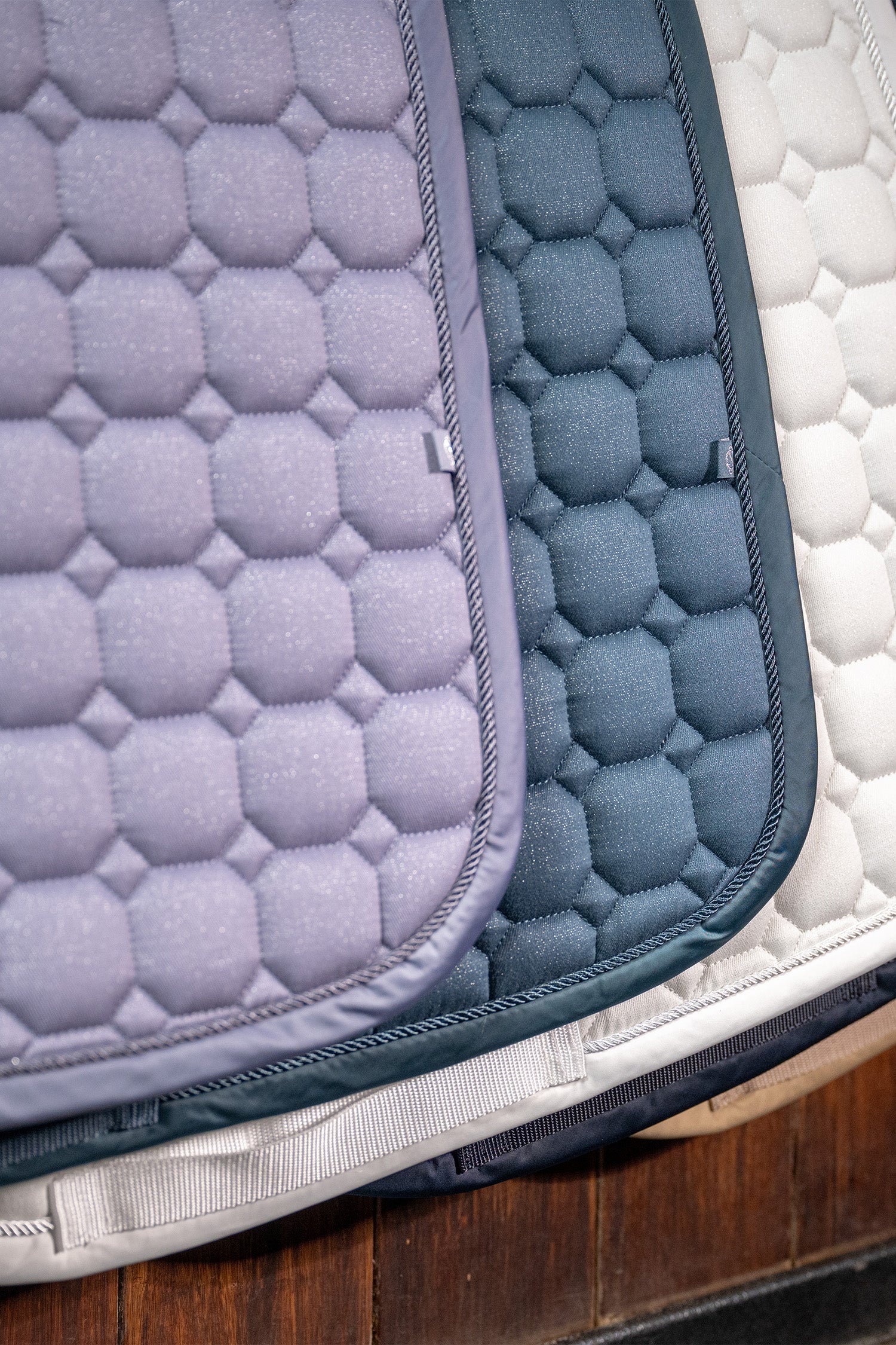 Tre separate kanaler til gjordstropper gør det nemt at tilpasse pasformen til sadlen og bidrager til en sikker og stabil placering. På begge sider findes Eskadrons karakteristiske flaglogo, som giver et sporty og eksklusivt udtryk. Underlaget leveres desuden med en dekorativ Eskadron-berlock, der sætter et ekstra stilfuldt præg på udstyret.