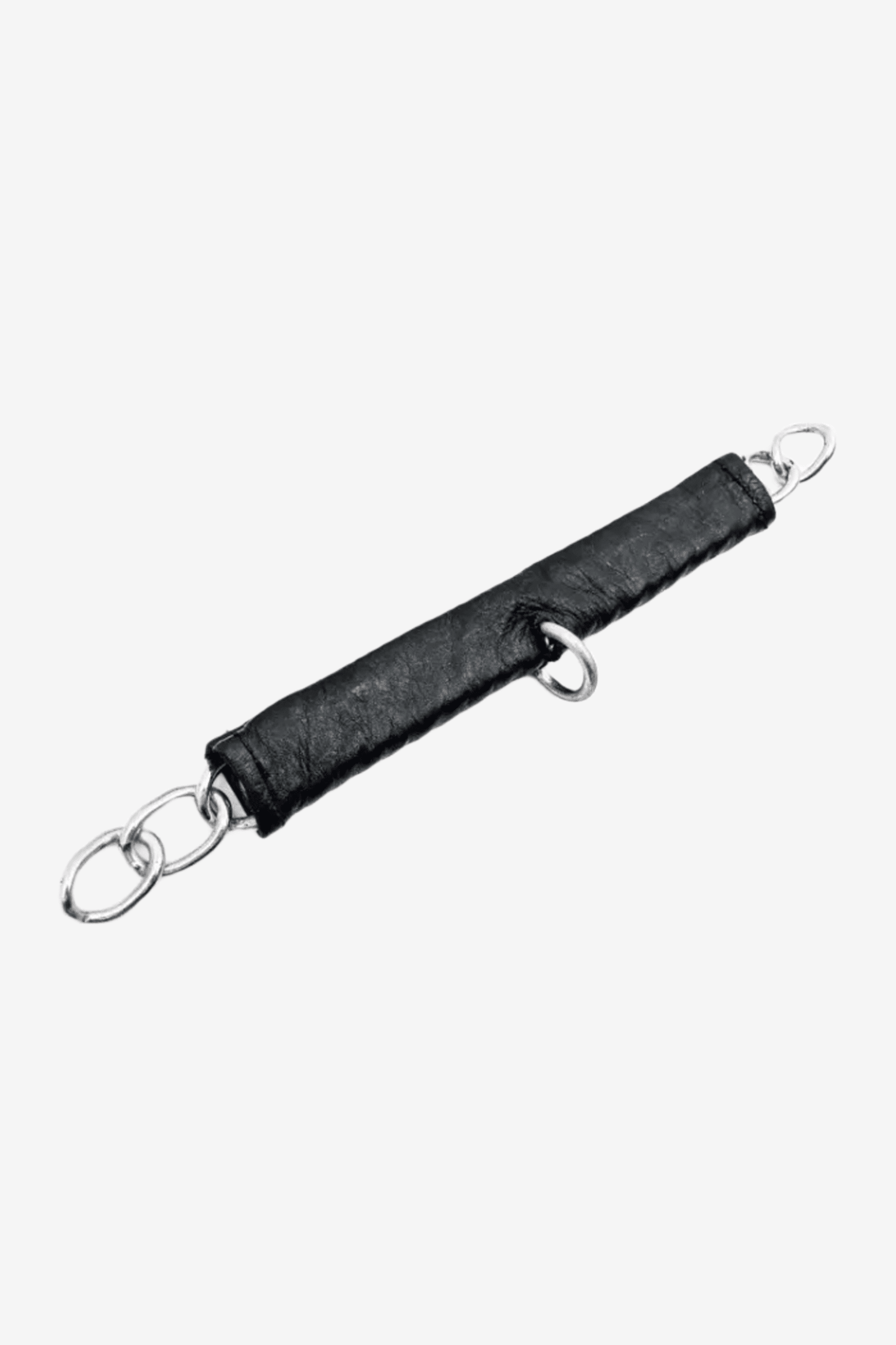 Kindkæde i rustfrit stål med kindkæde beskytter i sort læder.