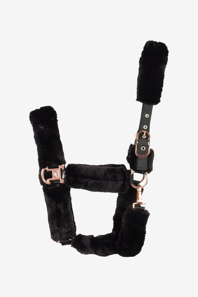 Forhindrer skav og er blød og behagelig for hesten. Justerbar rundt om halsen med spænder på begge sider. Spænder i rosaguld giver grimen et eksklusivt touch.