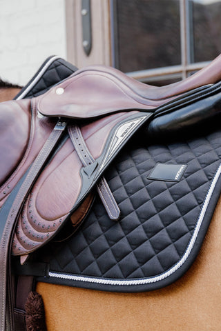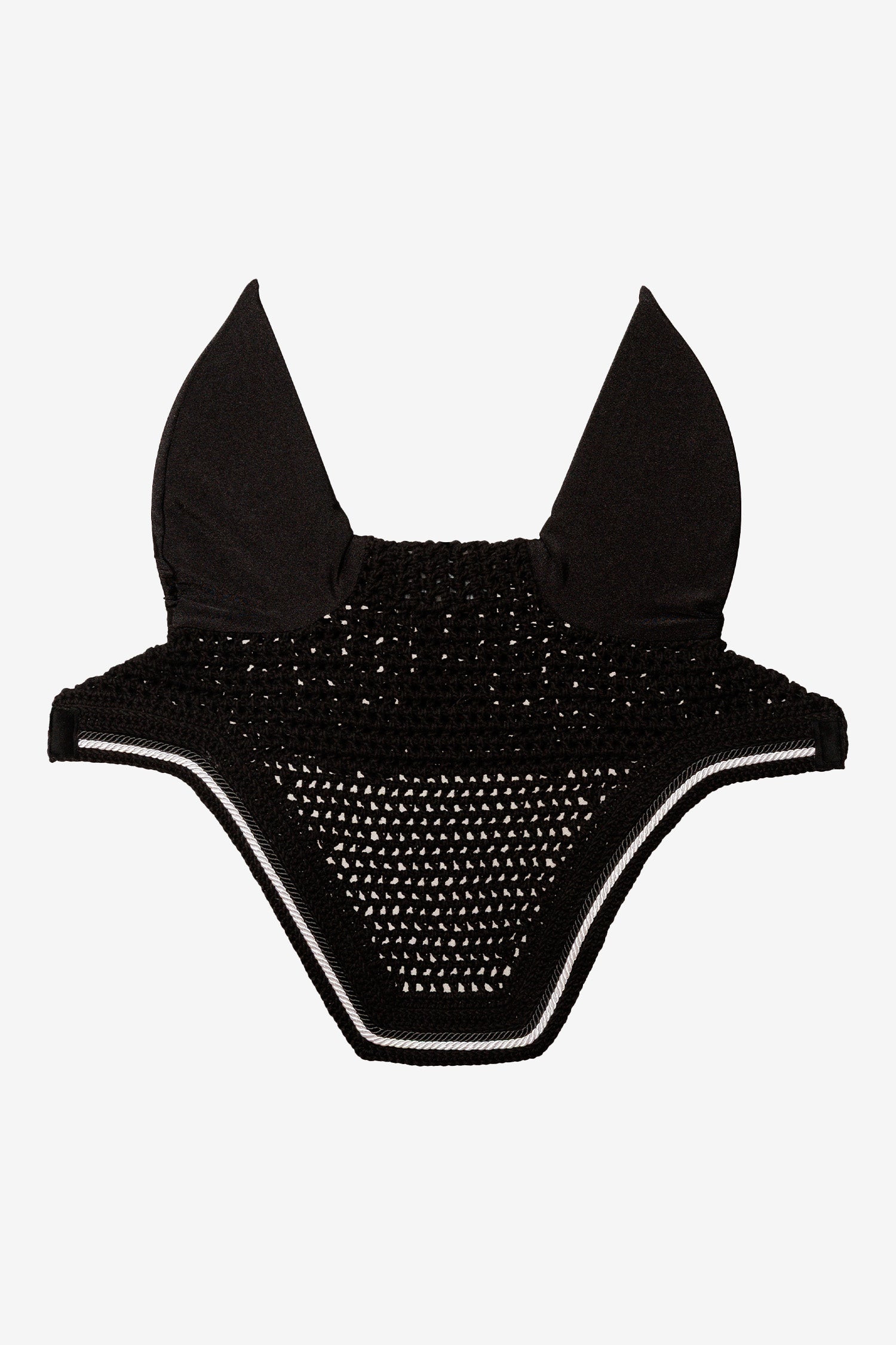 Kentucky Wellington Diamond Rope fluehætte i sort er en luksuriøs og funktionel fluehætte, der kombinerer elegance med komfort. Den er håndhæklet i slidstærkt og åndbart bomuldsgarn, hvilket giver en holdbar og behagelig pasform til hesten.