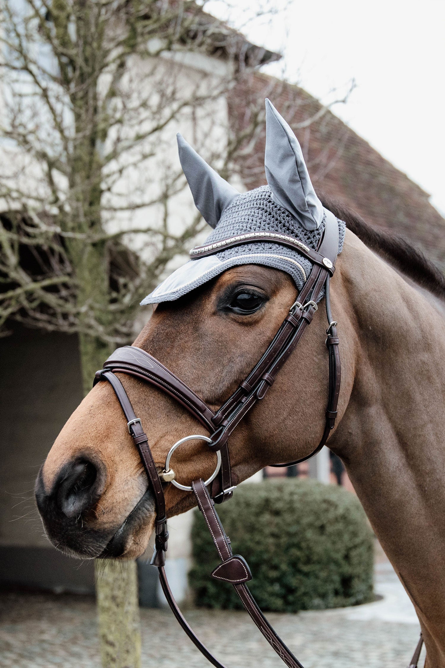 Hætten har stilfulde samt-detaljer, der matcher Velvet kollektionen fra Kentucky. Fluehætte Basic Samt beskytter hestens ører mod fluer under ridning og er en flot detalje. Materialet omkring ørerne er elastisk og har en slank pasform, hvilket giver en behagelig pasform.