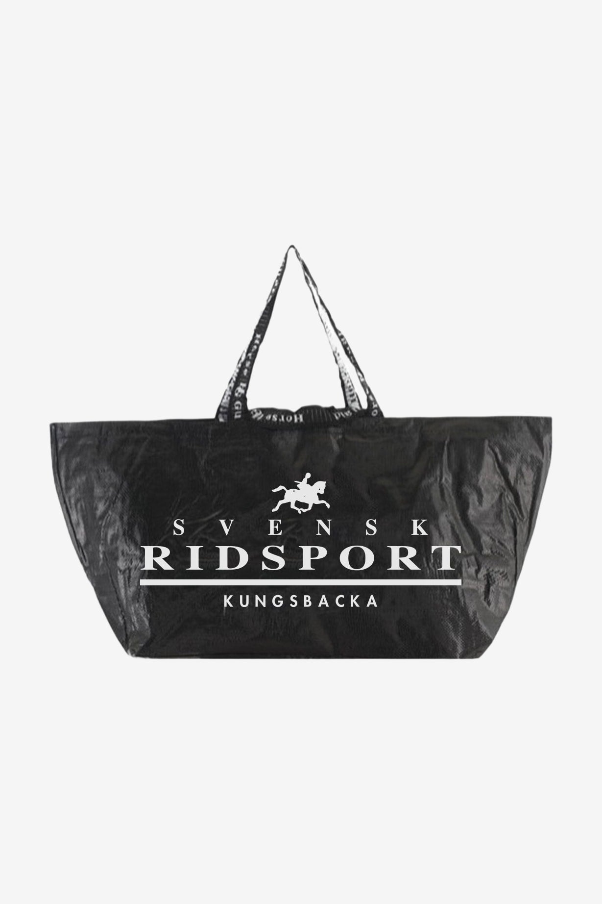 Den er fremstillet i slidstærkt materiale og har Svensk Ridsport-logo på begge sider, hvilket gør den både praktisk og flot at bære eller have stående i stalden.
