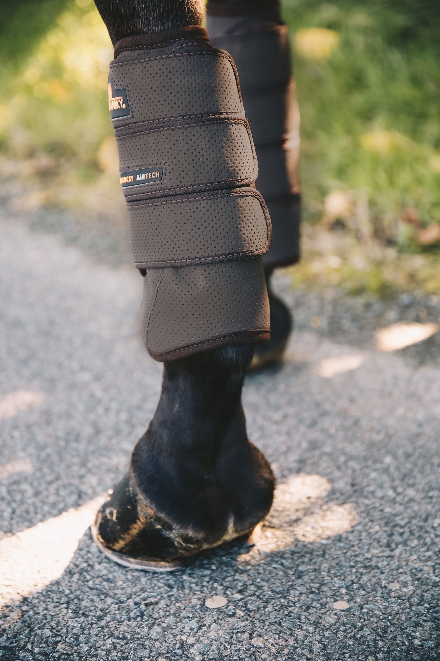 Det ydre lag er lavet af perforeret kunstlæder. De små ventilationshuller sikrer, at hestens ben ikke bliver for varme. Gamacherne absorberer ikke vand, hvilket betyder, at Air Tech Eventing Boot bevarer sin lette vægt selv i regn eller efter en vandforhindring på banen i terrænet.