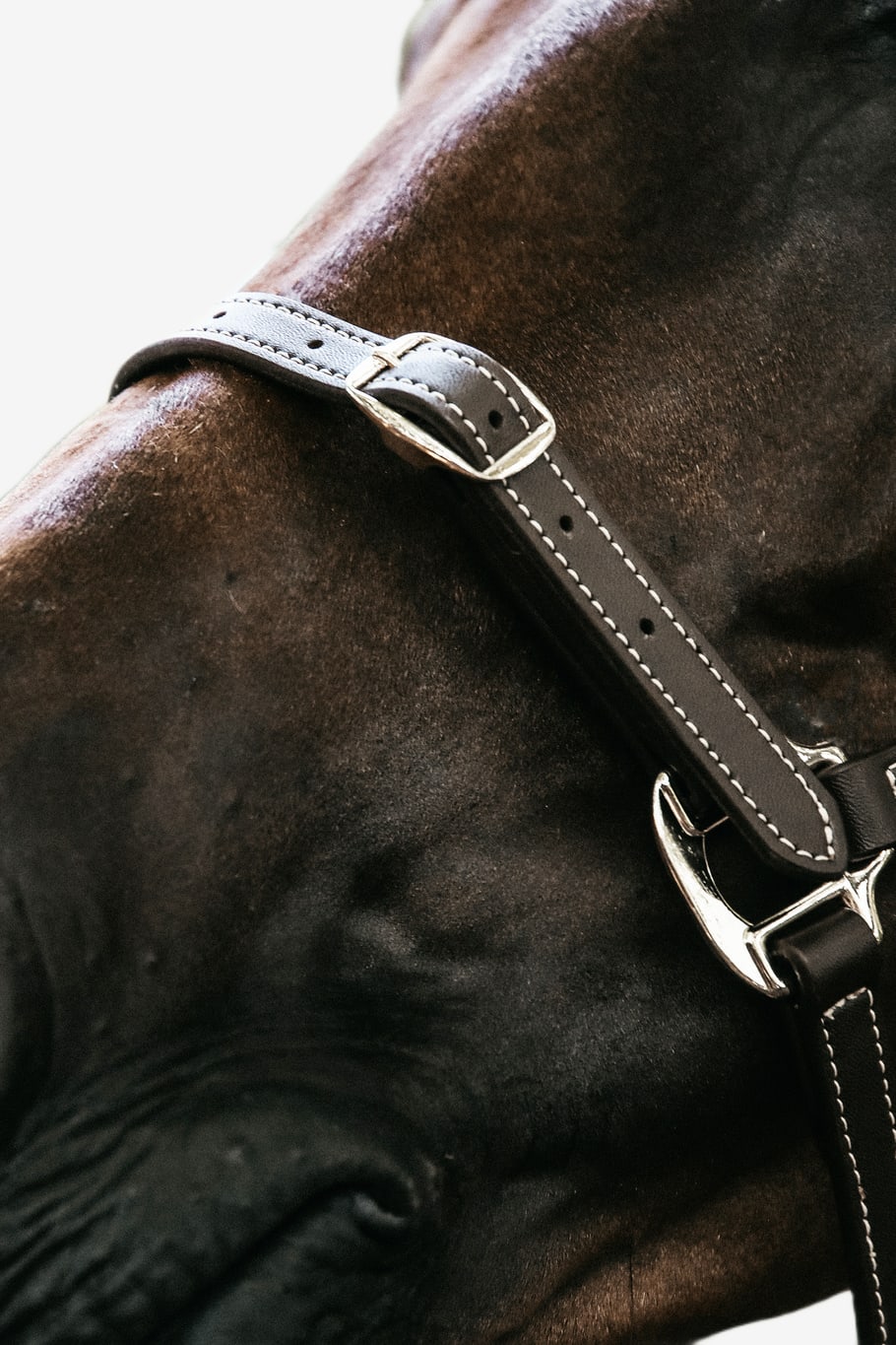 Elegant og flot designet med et anatomisk nakkestykke med blød polstring, der fordeler trykket. Justerbart nakkestykke fra begge sider samt over næsen med fine messing spænder. Hurtigudløser under kæben.