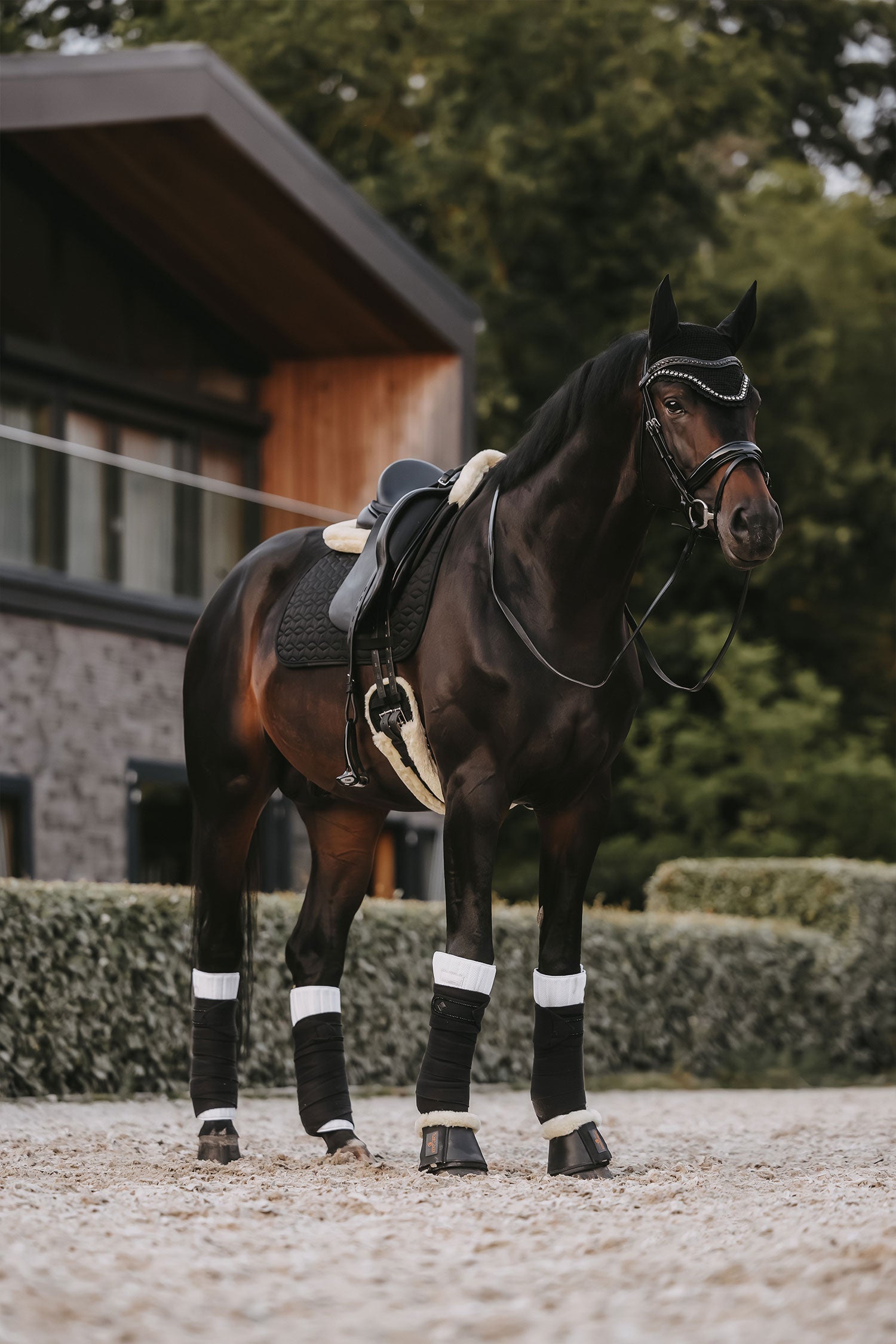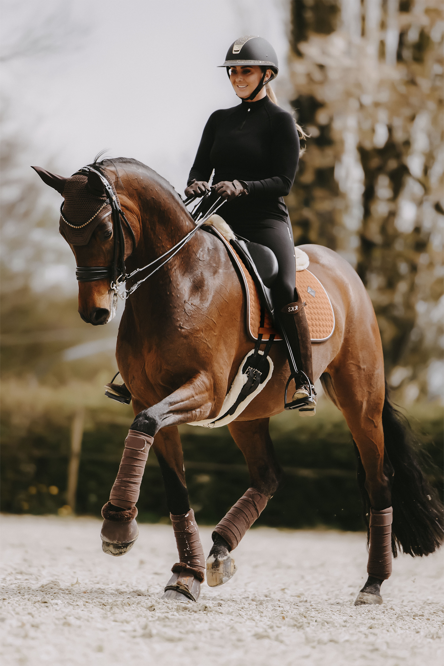En behagelig dressurgjord med kunstigt lammeskind, der giver ekstra komfort for hesten.