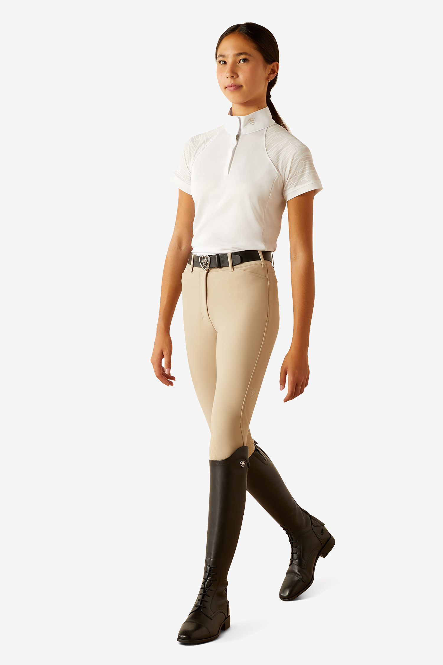 Ariat konkurrencetrøje er en let og elegant showtrøje, der kombinerer stil med høj funktionalitet på varme konkurrencedage. Den er designet til at give et professionelt indtryk i konkurrenceringen, samtidig med at den tilbyder komfort og bevægelsesfrihed i sadlen.