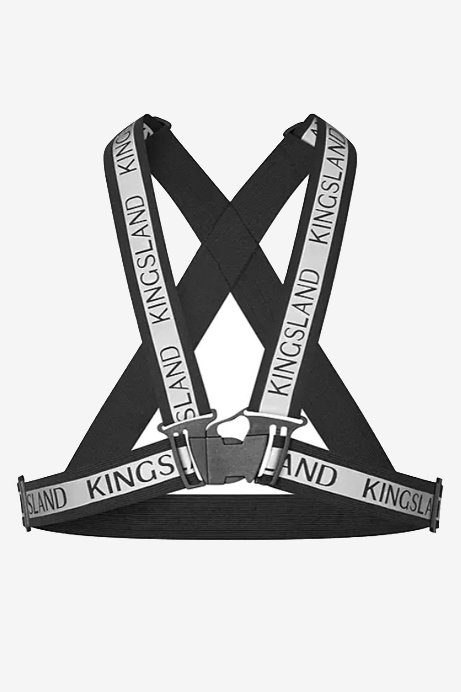 En let og fleksibel refleksvest, der supplerer dit rideudstyr og gør dig synlig i mørket. De elastiske bånd krydses over ryggen for en stabil pasform og kan nemt justeres omkring taljen, så vesten sidder behageligt uden at begrænse din bevægelsesfrihed i sadlen. De brede, reflekterende remme med tydeligt Kingsland-logo opfanger lyset fra biler og pandelamper, hvilket øger din sikkerhed under rideture, gåture med hesten og staldarbejde i svagt lys.
