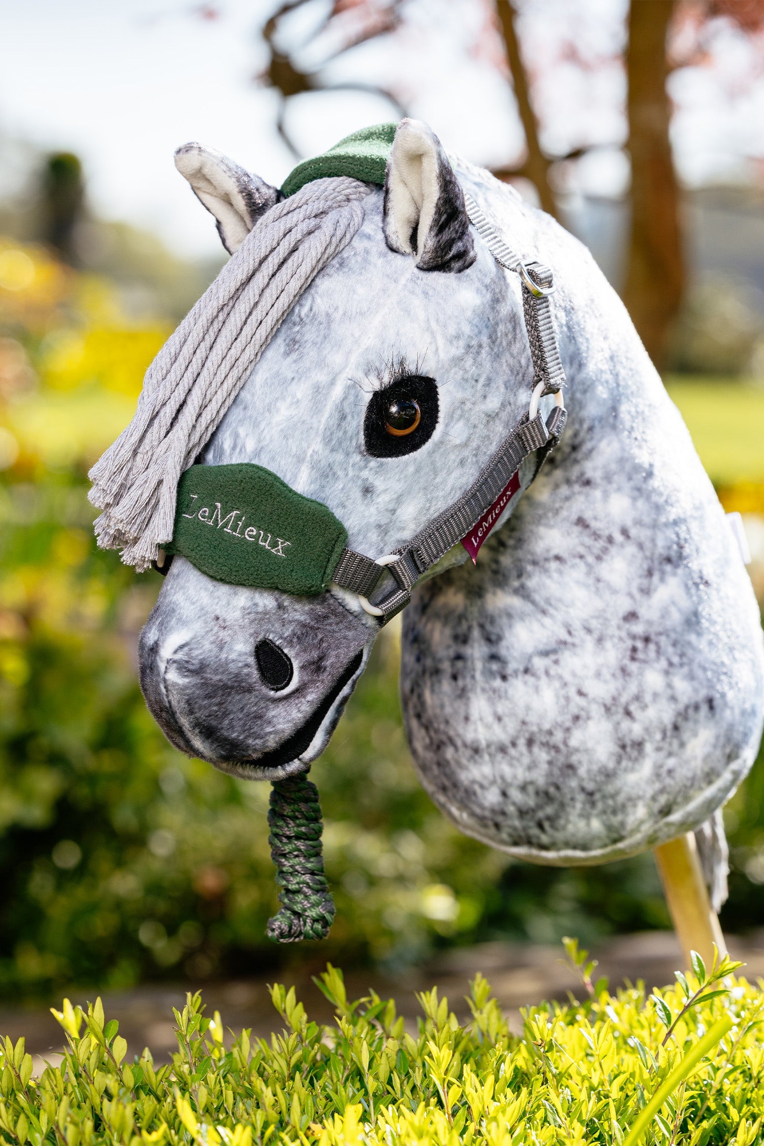 Kæphest Vogue grime & grimeskaft Hunter Green er et blødt og stilfuldt sæt skabt til sjove og fantasifulde kæphesteeventyr. Grimen er udstyret med luksuriøse fleecepartier ved nakkerem og næsebånd, hvilket giver en behagelig følelse og ekstra komfort under legen. Den er desuden justerbar ved nakkeremmen, så den nemt kan tilpasses forskellige kæpheste.