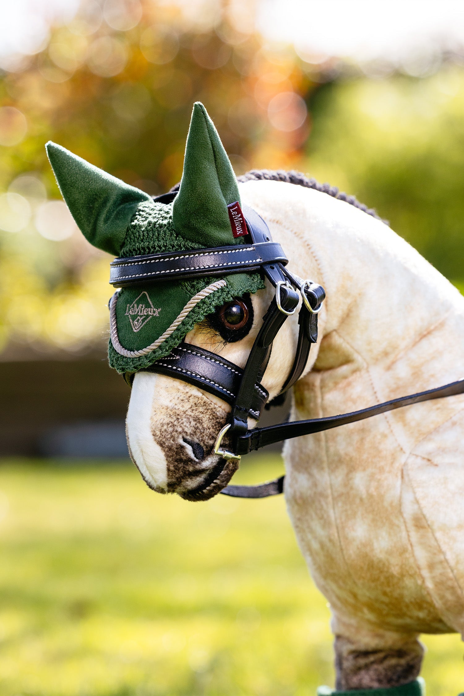 Toy Pony fluehætte Hunter Green er en omhyggeligt udformet miniversion af LeMieuxs klassiske fluehætte og et ideelt supplement til dit Toy Pony-udstyr. Det håndhæklet design giver et autentisk og detaljeret udtryk, mens de superbløde ører med ruskindslignende materiale gør hætten både komfortabel og naturtro.