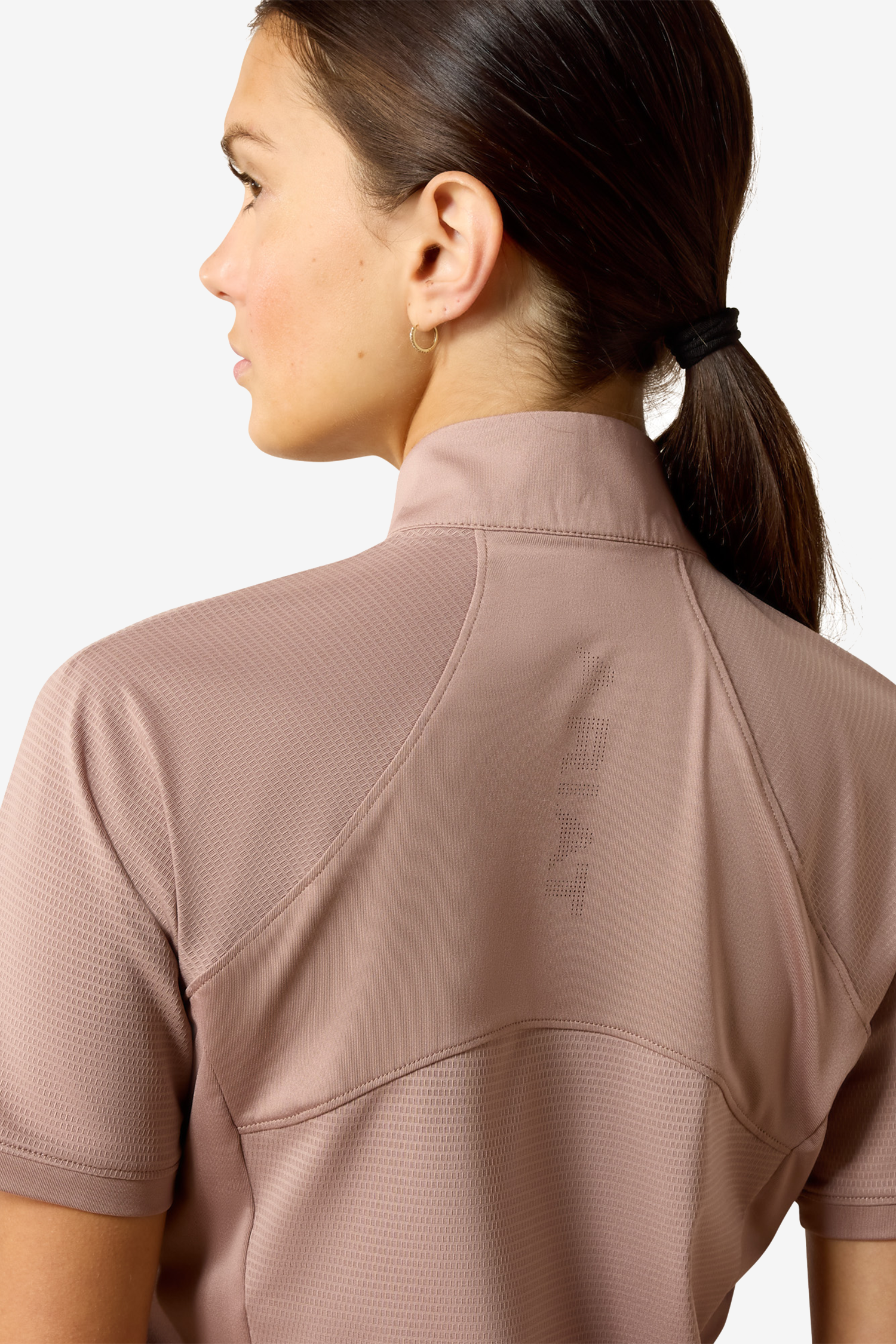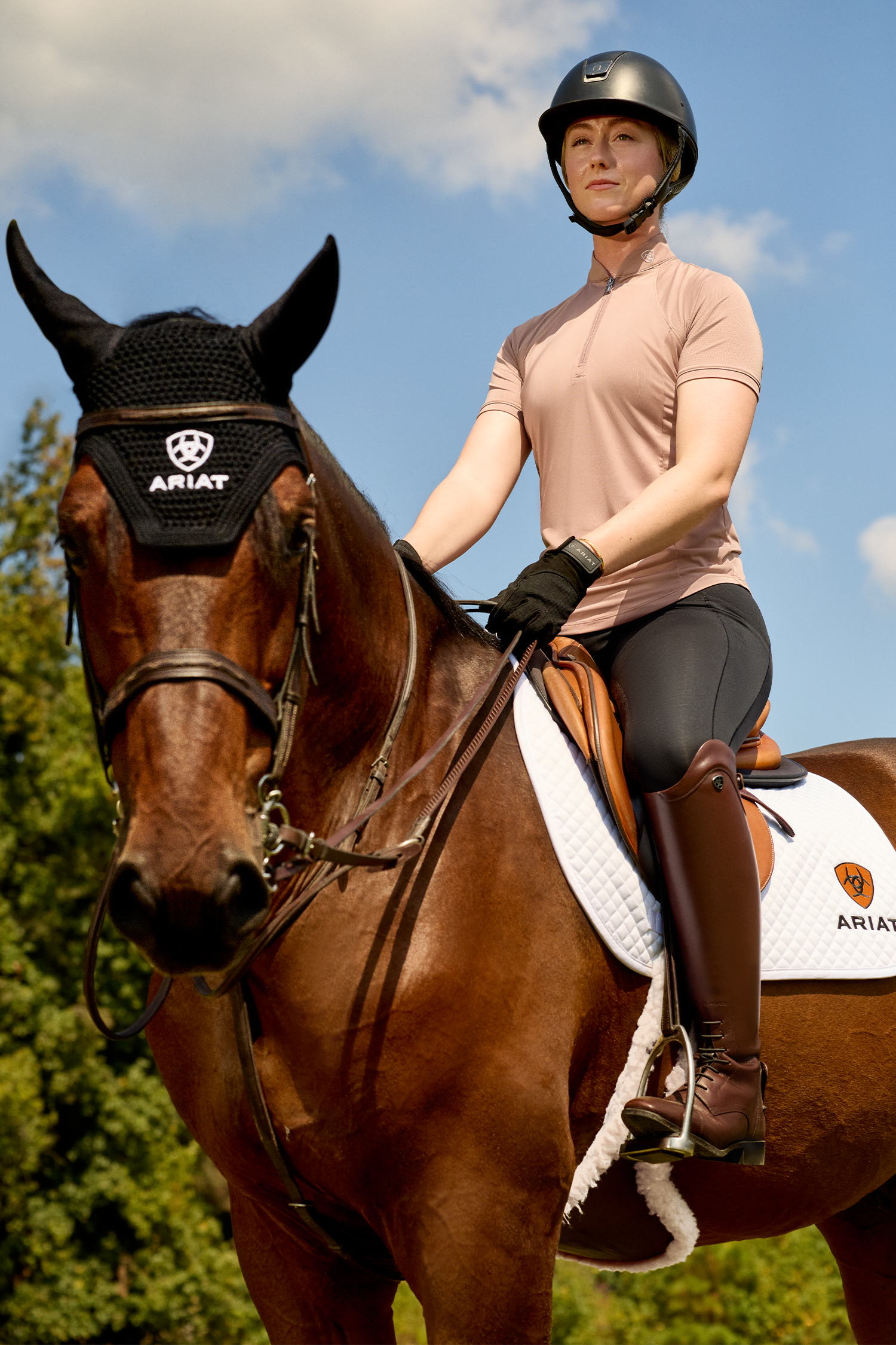 Ariat Soquel konkurrencebluse kombinerer det elegante udtryk fra en klassisk konkurrencebluse med den tekniske ydeevne fra en moderne træningstop. Den er udviklet til ryttere, der ønsker at føle sig både stilfulde og komfortable under træning, pay and ride og på varmere stævnedage.
