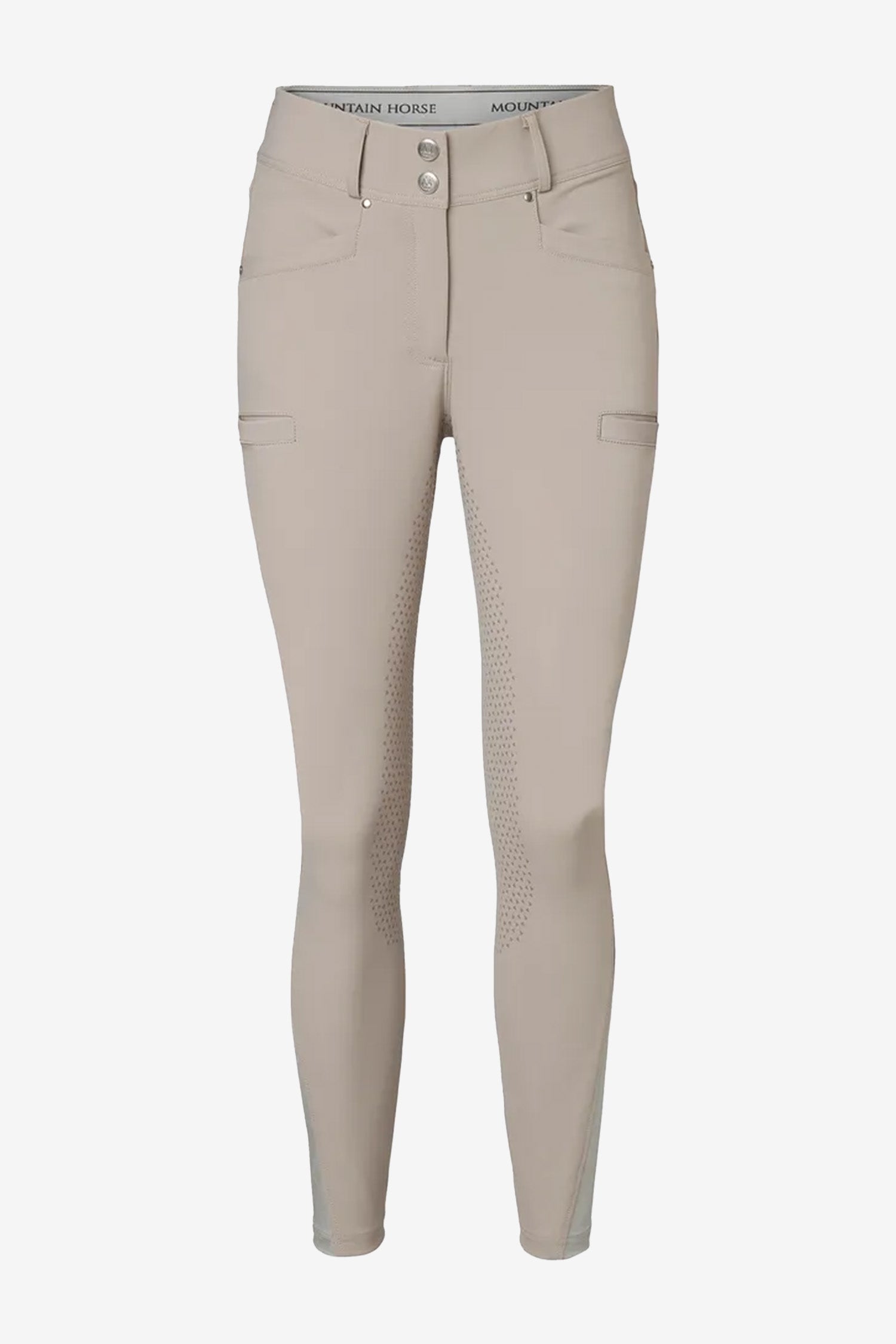 Den fuldskodede, silikonebaserede MH grip-teknologi giver et stabilt og sikkert greb i sadlen, hvilket bidrager til bedre balance og kontrol under ridningen. En praktisk mobillomme på benet gør det nemt at have telefonen lige ved hånden under både ridning og staldarbejde. Det moderne design kombinerer funktionelle detaljer med et stilrent look, der passer til både træning og forberedelse til stævner.