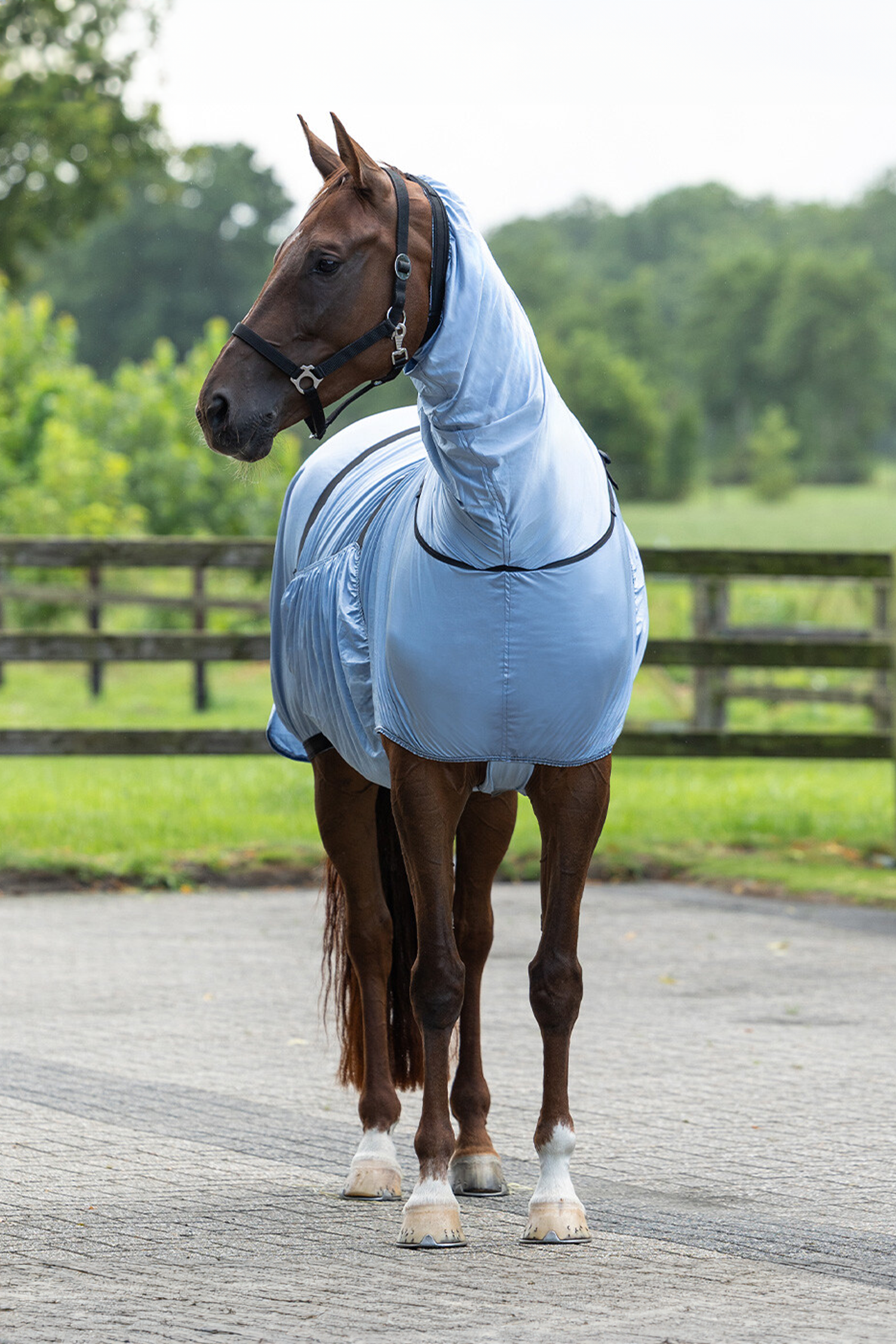 Dækkenet er fremstillet i finmasket og åndbart materiale, som giver god ventilation, samtidig med at det beskytter mod insektbid. Stoffet er også UV-bestandigt og hjælper med at beskytte hesten mod solens stråler.