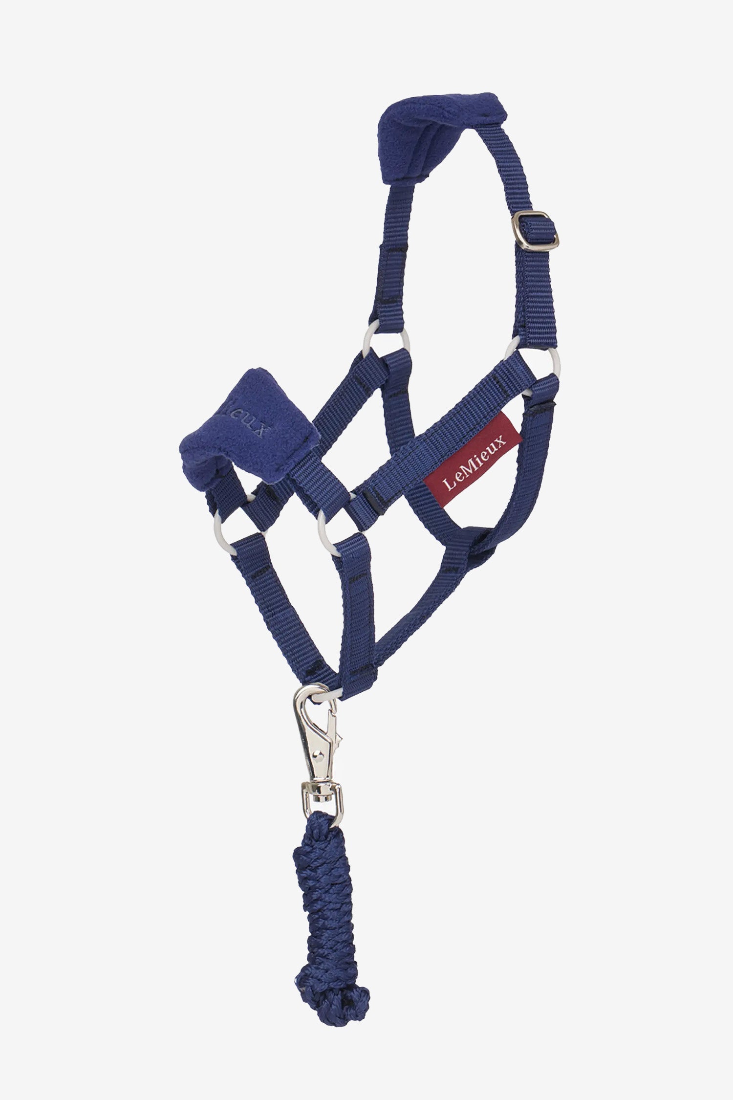 En blød, luksuriøs grime med fleece-indlæg ved nakken og næsen. Grimen passer til alle søde kæpheste.