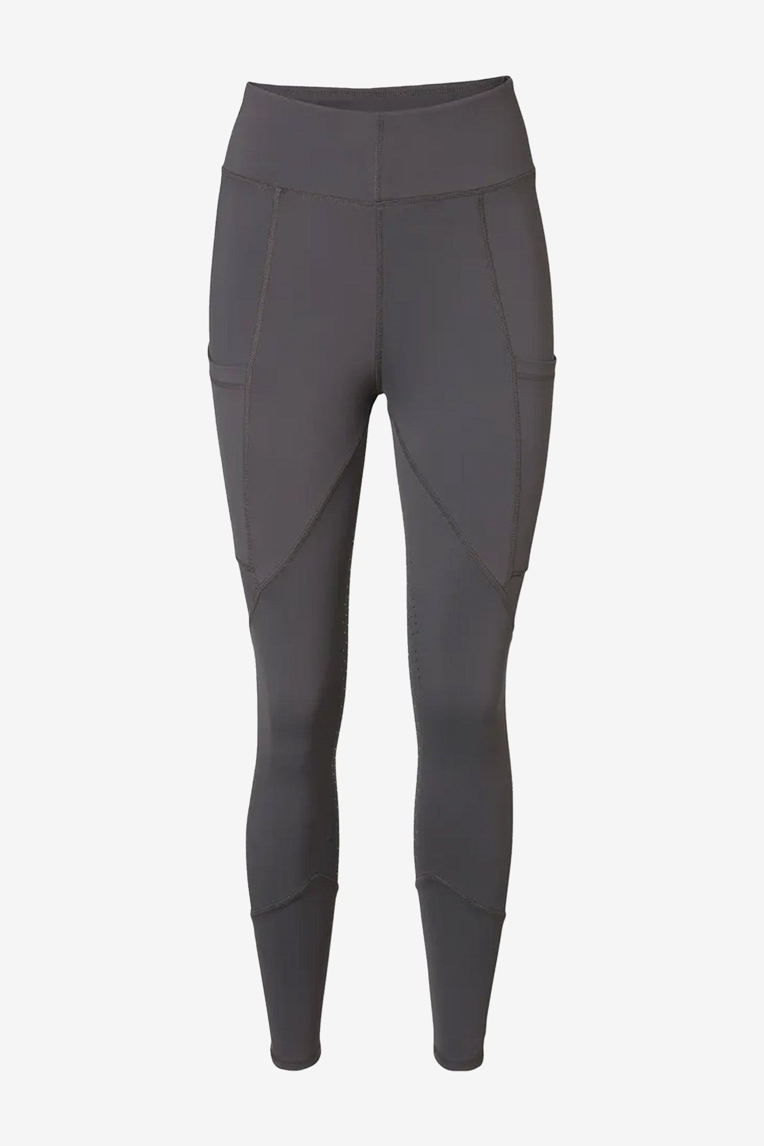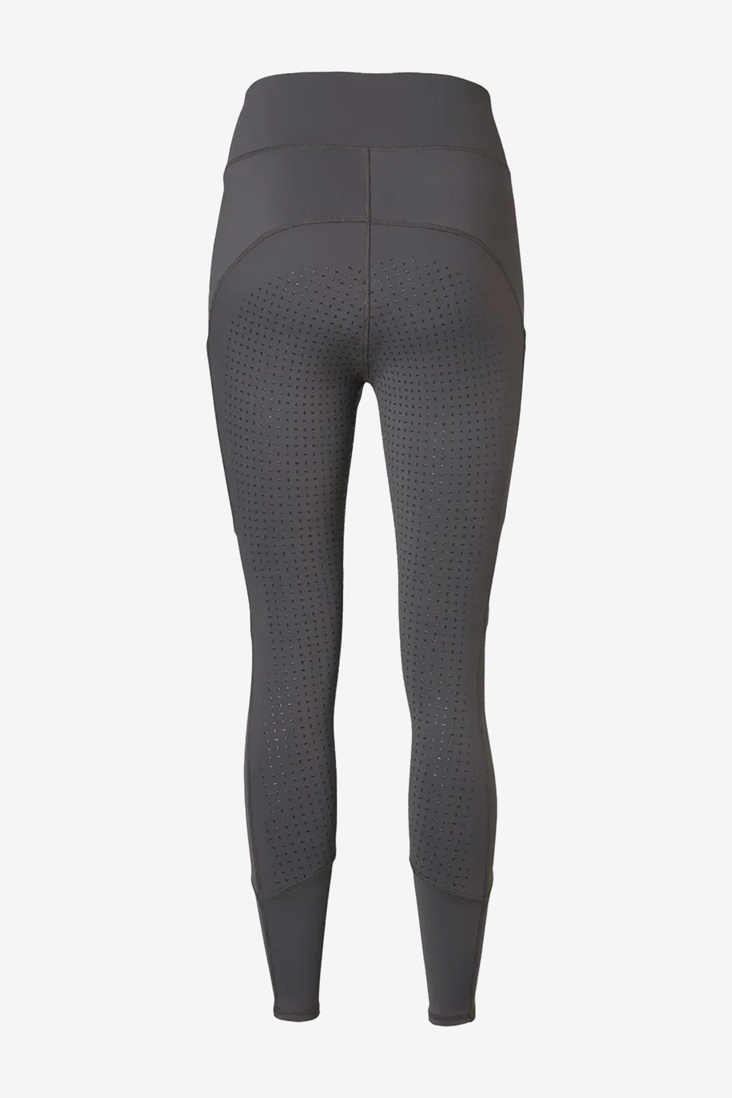 Ridtightsene er udstyret med en let silikoneforstærkning over sæde og inderside af knæ, som giver et stabilt greb i sadlen uden at begrænse bevægelsesfriheden. Praktiske mobiltelefonlommer på begge ben gør det nemt at have telefonen lige ved hånden under ridning eller staldarbejde.