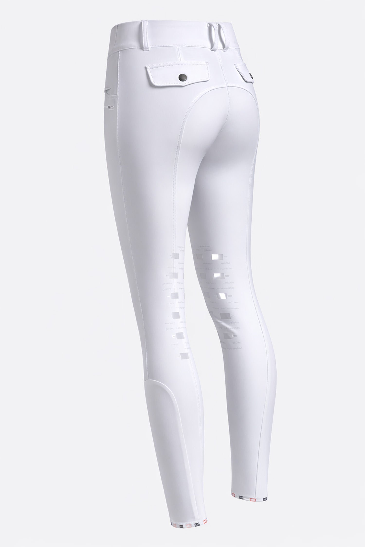 Knægrip-systemet giver et stabilt og sikkert greb i sadlen, samtidig med at bevægeligheden bevares. Den tekniske kvalitet gør dem lige velegnede til intensive træningspas som til konkurrence. Elastiske benafslutninger sikrer en smidig pasform under ridestøvler og minimerer gnidning.