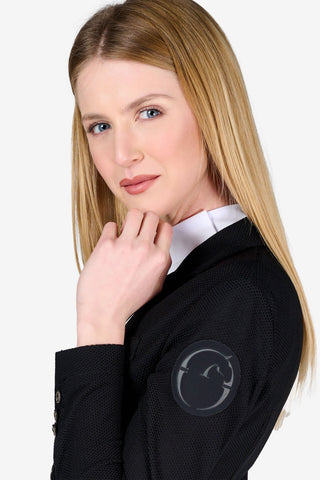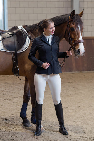 Hos Swedish Equestrian finder du et bredt udvalg af ridejakker til damer – uanset om du søger en klassisk stævnejakke, en moderne sommerjakke i mesh eller en elegant dressurfrakke. Vores jakker er designet til at kombinere maksimal bevægelsesfrihed med en flot, figursyet silhuet, så du kan præstere optimalt og samtidig føle dig komfortabel og selvsikker i sadlen.