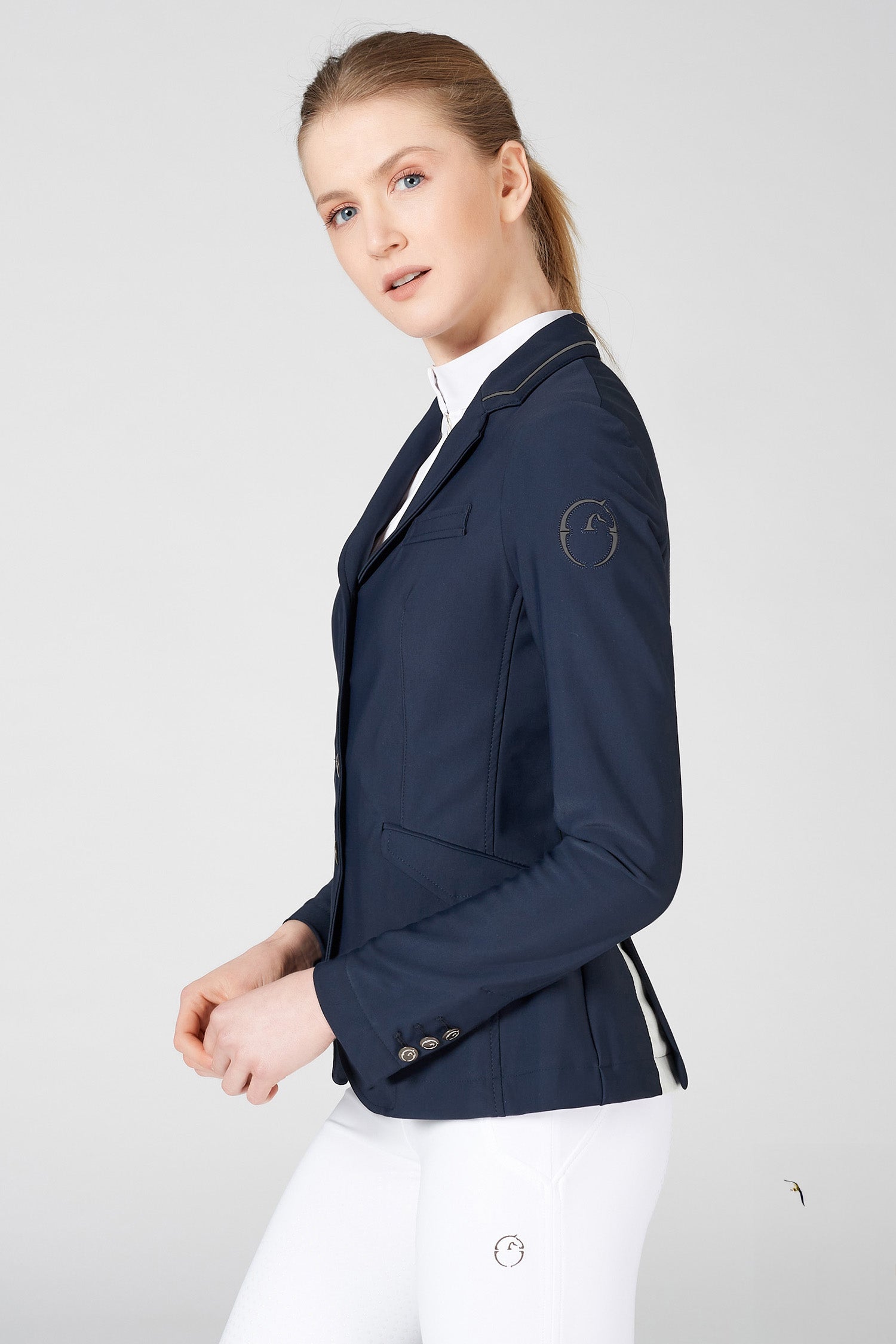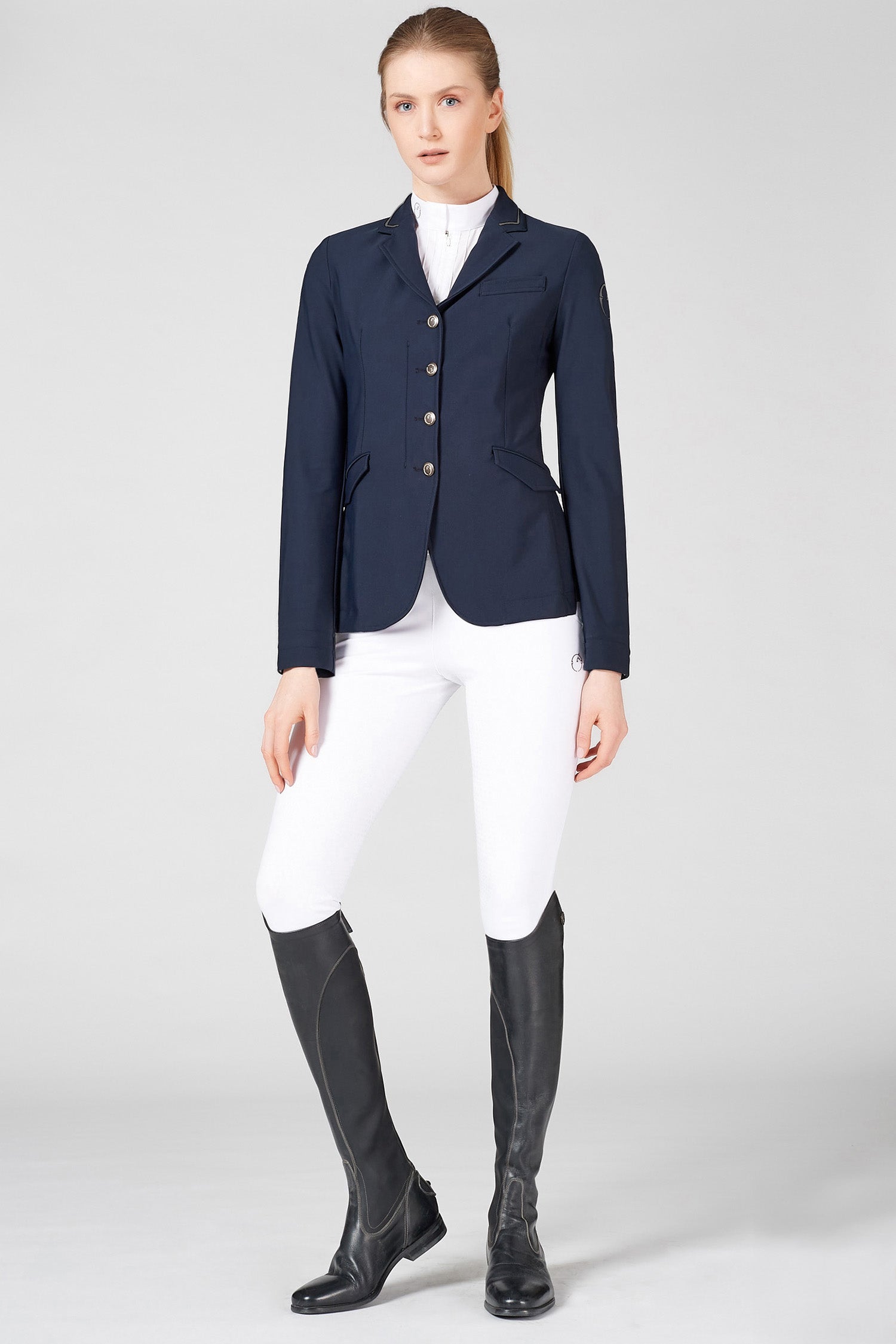 Utrolig stilfuld og velsyet stævnejakke med fire knapper foran samt skjult lynlås. Fremstillet af den fineste kvalitet med bi-stretch teknisk materiale.