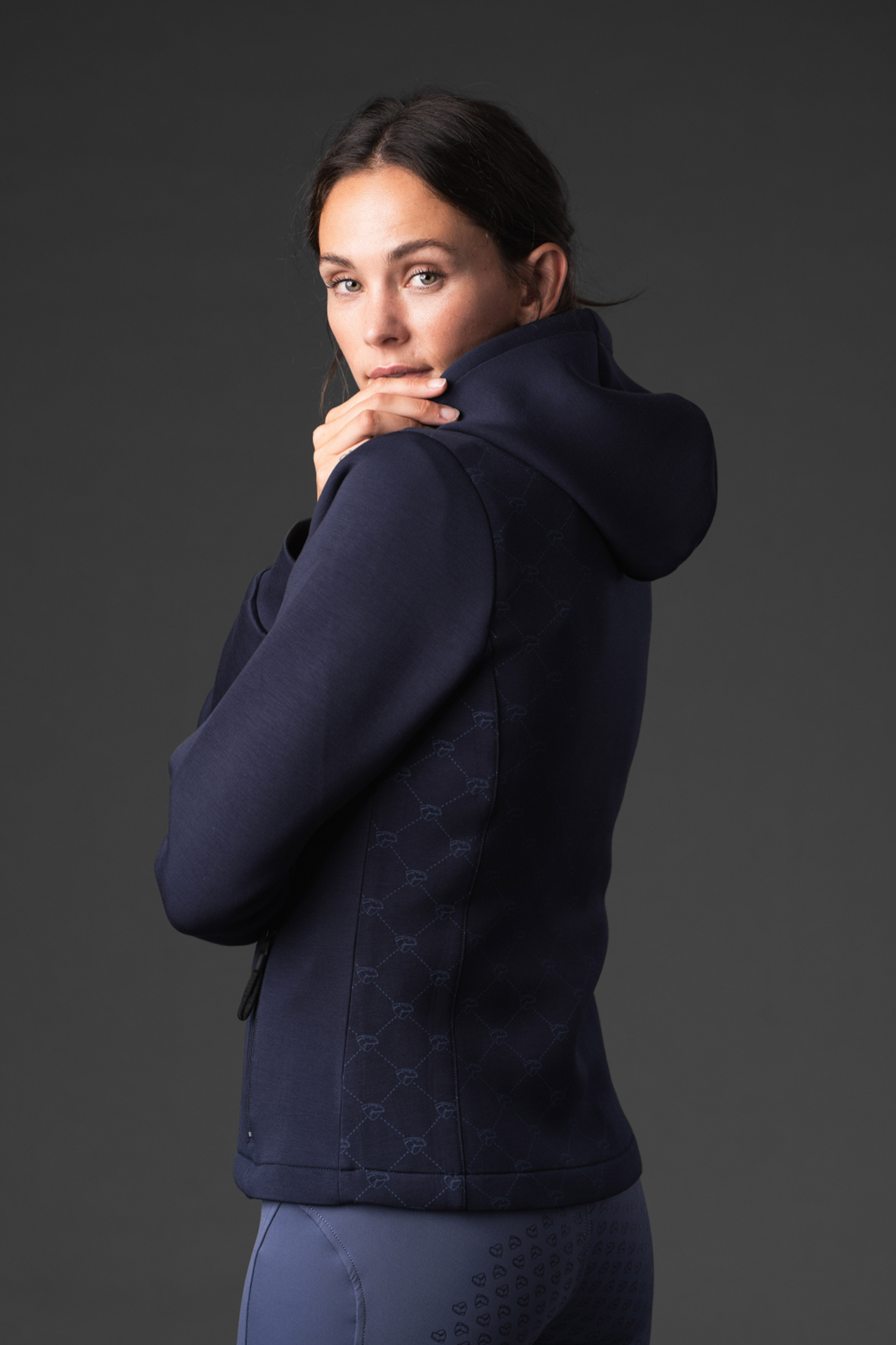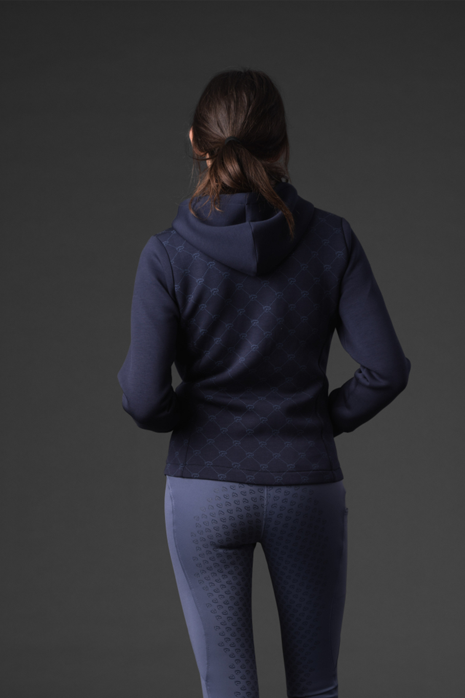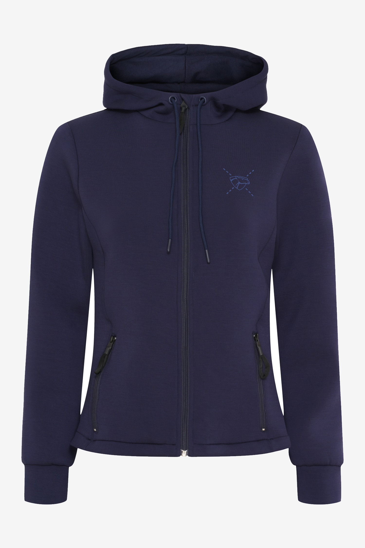 Farven navy – den dokumenterede variant – gør, at hoodien nemt kan matches med andet rideudstyr eller fritidstøj.