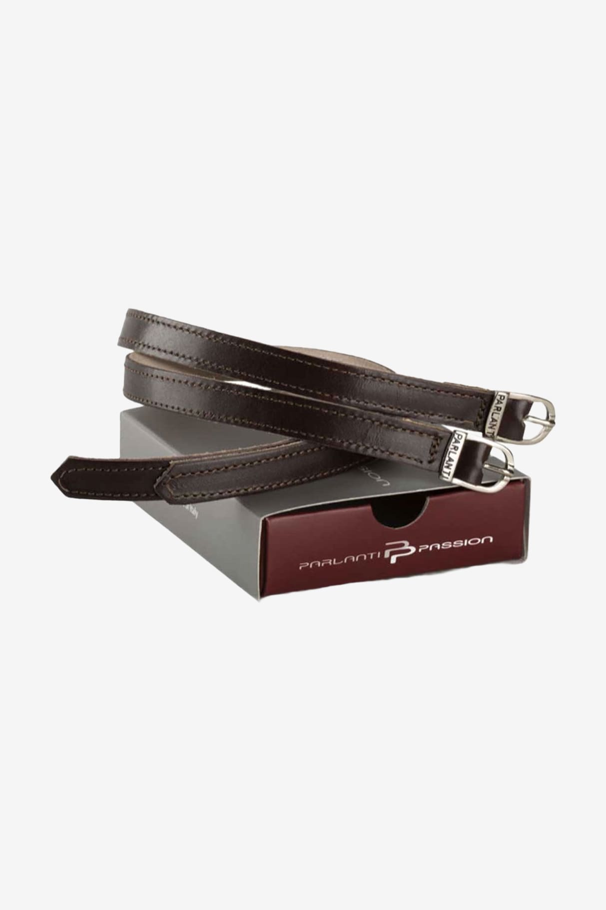 Elegante, håndlavede spore remme af brunt læder fra Parlanti.