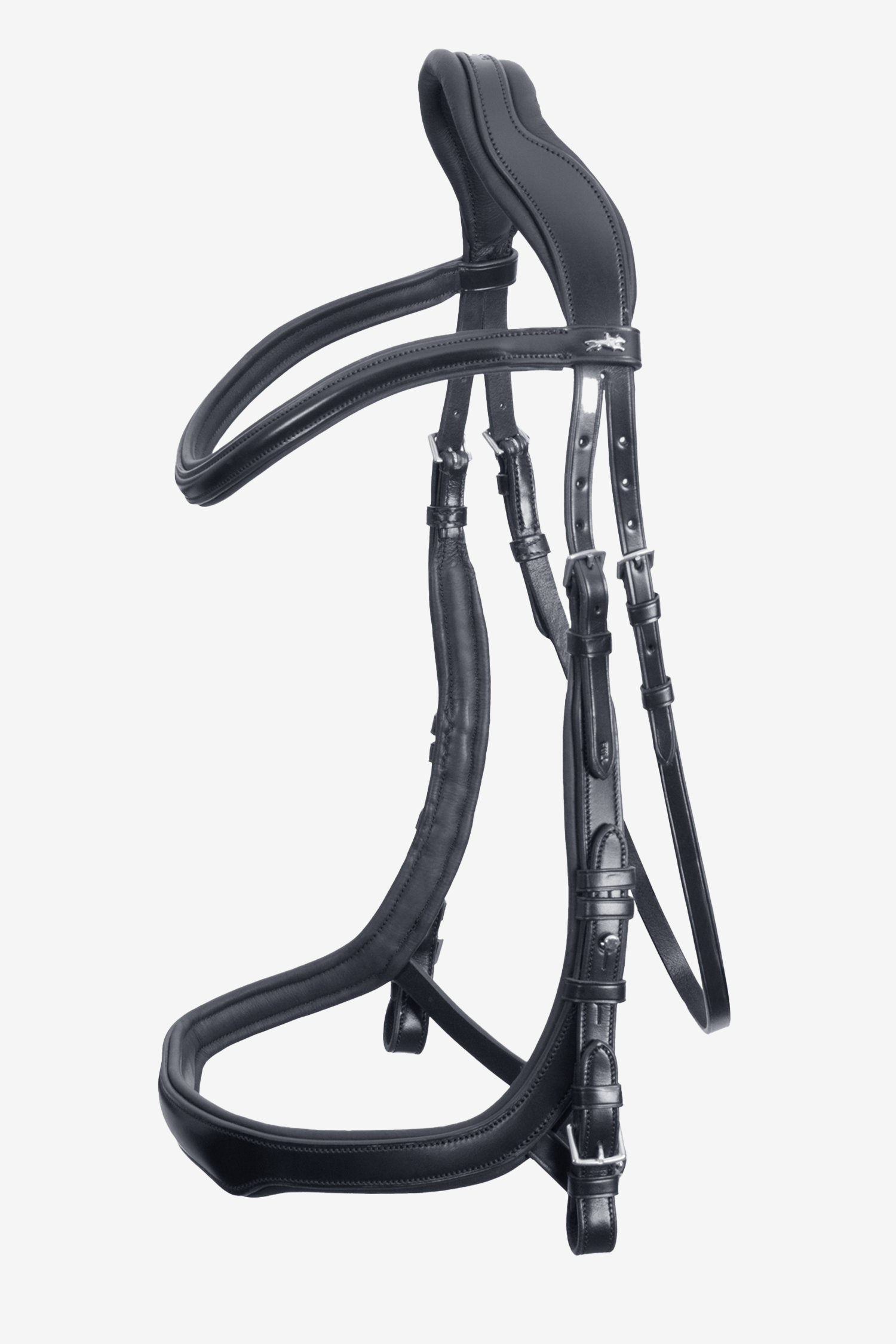 Den anatomiske Equitus Delta trense fra Schockemöhle er designet til maksimal bærekomfort og opfylder de højeste krav til pasform. Det blødt polstrede hovedstykke og det brede, buede pandebånd øger komforten for din hest og undgår ubehageligt tryk på det følsomme hestehoved. Takket være de forbedrede knapnitter kan trensen nemt justeres.