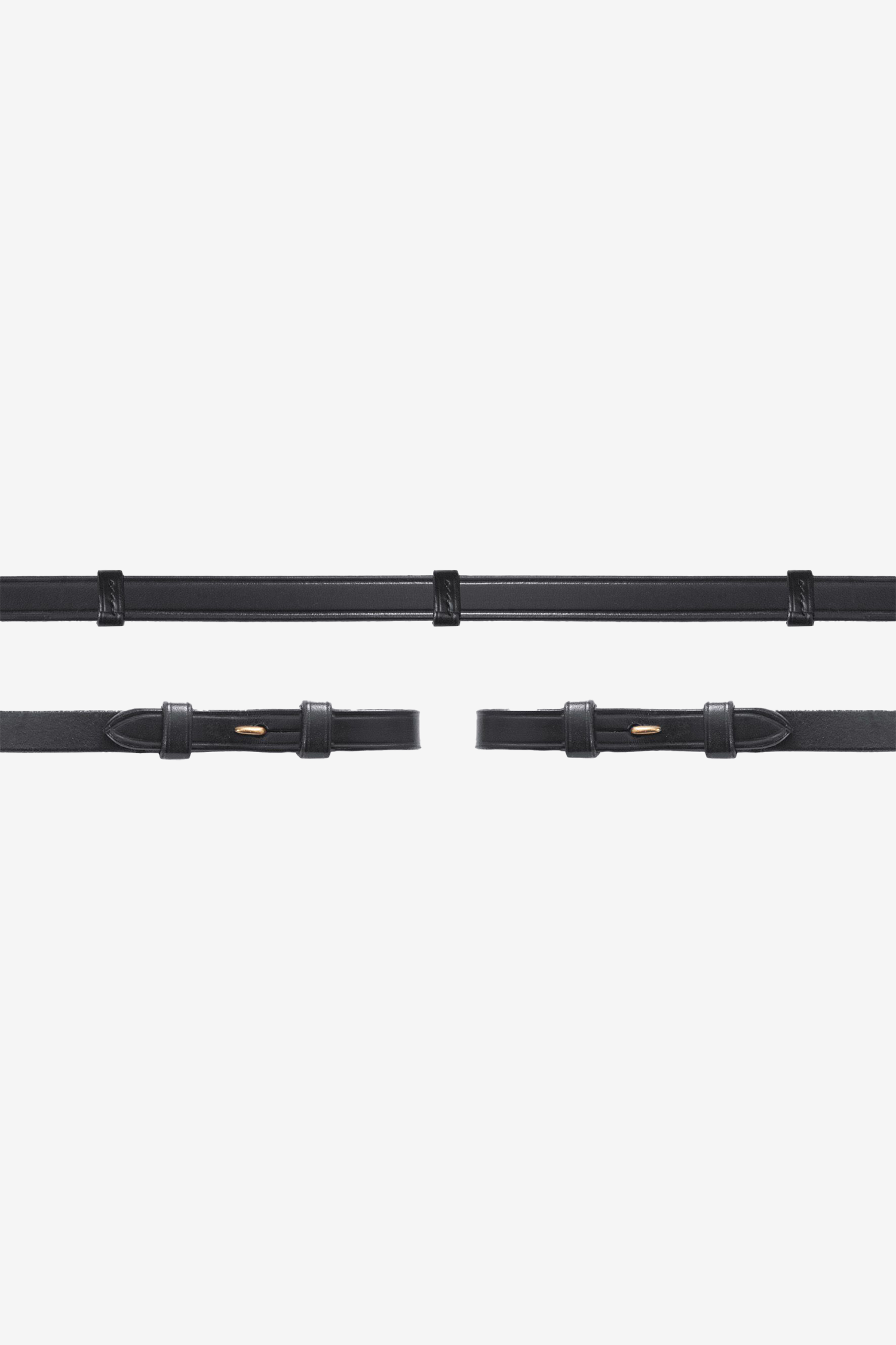 Traditionel tøjle, der er syet med glat læder på ydersiden og på indersiden (med stop) for det bedste greb. En perfekt tøjle til dig, der ønsker en blød og smidig tøjle, som er enkel, men med godt greb.