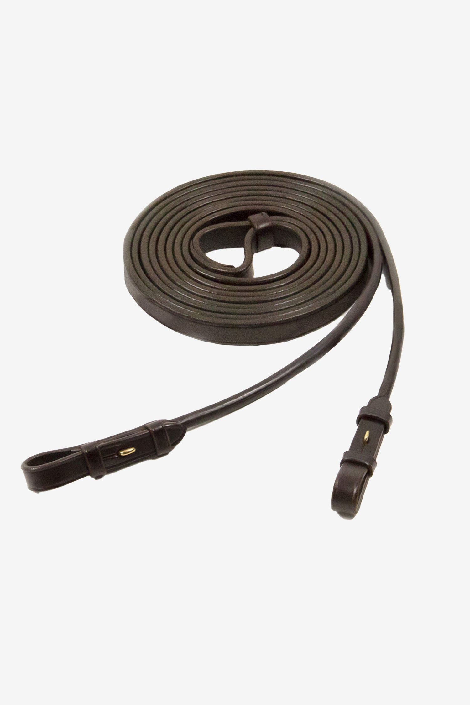 Tøjlerne er udstyret med praktiske hook & stud-lukninger, som gør dem nemme og hurtige at fastgøre og tage af. De rundsyede læderender giver en sofistikeret finish og bidrager til et stilrent helhedsindtryk, perfekt til både træning og konkurrence.