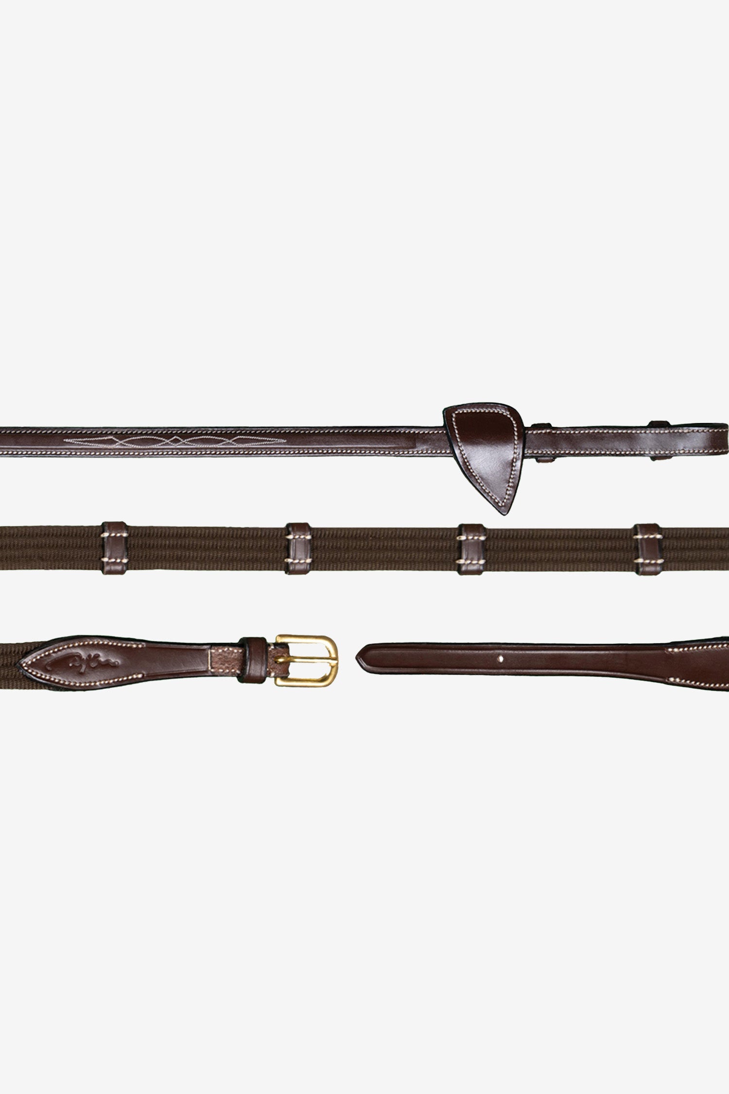 Med 9 jævnt placerede læderstop får du et skridsikkert greb og tydelige referencepunkter for hænderne, hvilket giver ensartet tøjlelængde og en stabil kontakt med hestens mund. Tøjlerne er desuden udstyret med indbyggede martingalstop, hvilket gør dem ekstra praktiske til træning og stævne.