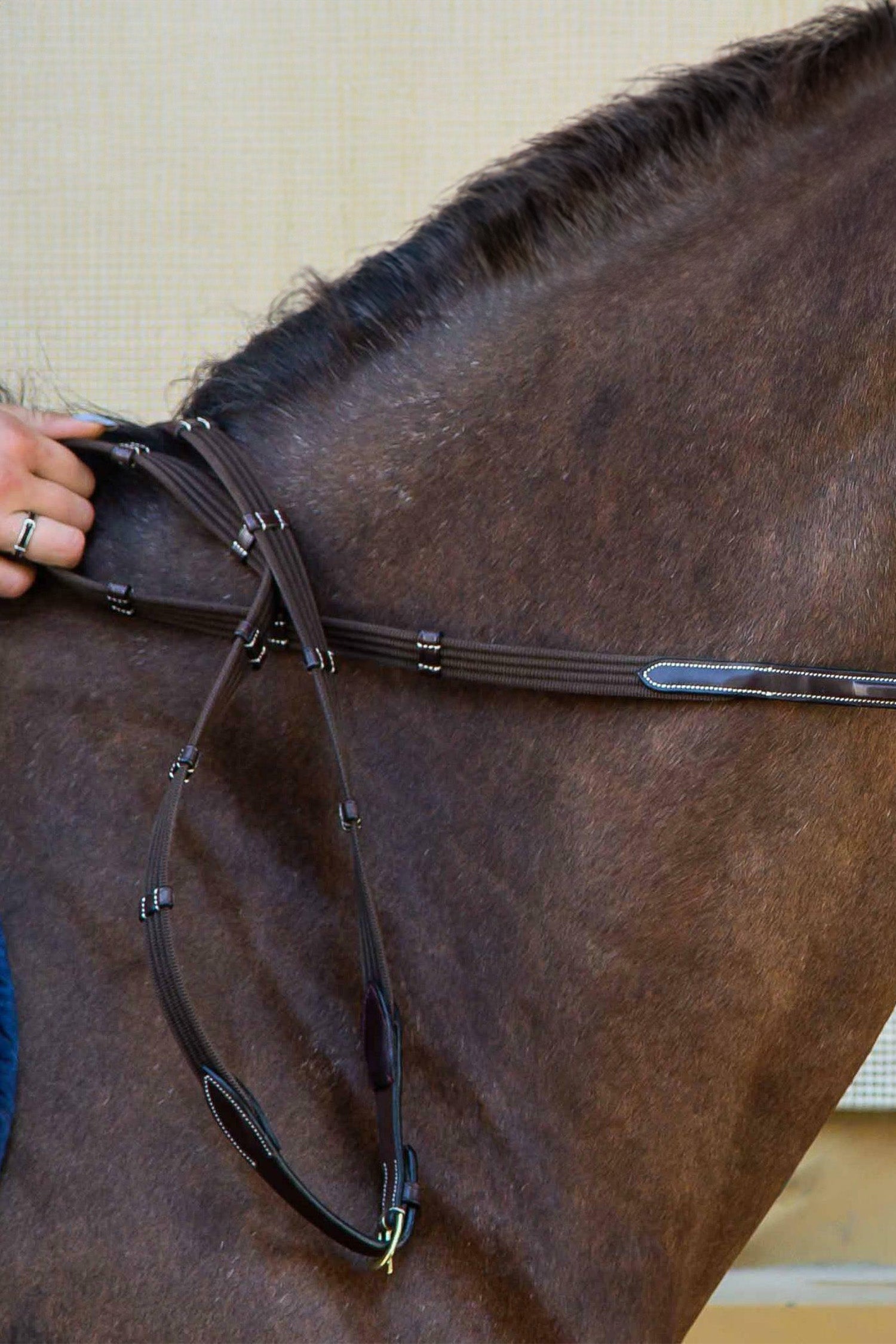 Kombinationen af slidstærk vævribb og eksklusivt Dyonlæder giver både lethed, åndbarhed og lang holdbarhed. Resultatet er en tøjle, der fungerer lige godt til spring, terræn og daglig træning – også under våde eller svedige forhold.