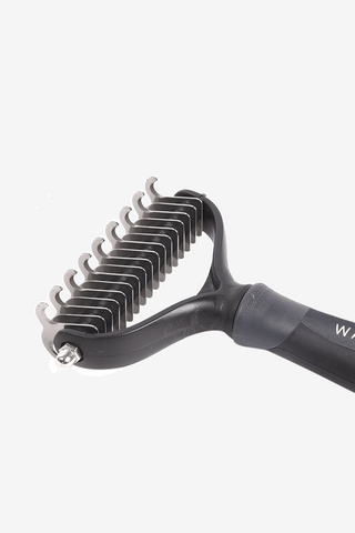 En stærk og effektiv børste til man og hale. Håndtaget er omsluttet af blød gel, hvilket gør den meget blød og behagelig at holde på. Piggene er stærke og reder de fleste knuder ud.
