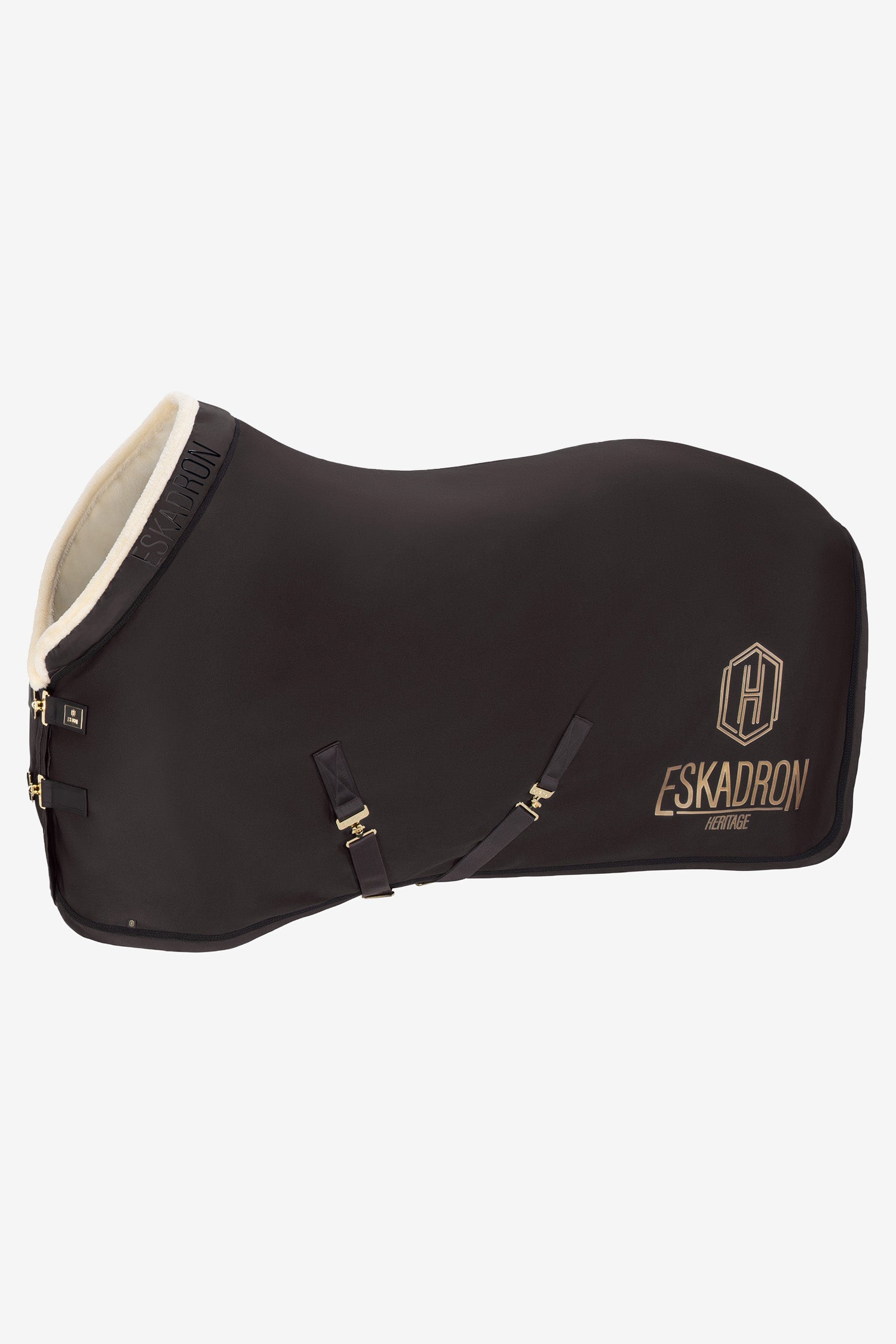 Die Decke verfügt über eine elegante glänzende Kante mit geflochtener Kordel, dekorativem Eskadron-Schriftzug auf beiden Seiten und einem Heritage-Emblem auf einer Seite. Der weiche Kunstfellkragen am Widerrist sorgt für zusätzlichen Komfort und verringert das Risiko von Scheuerstellen.