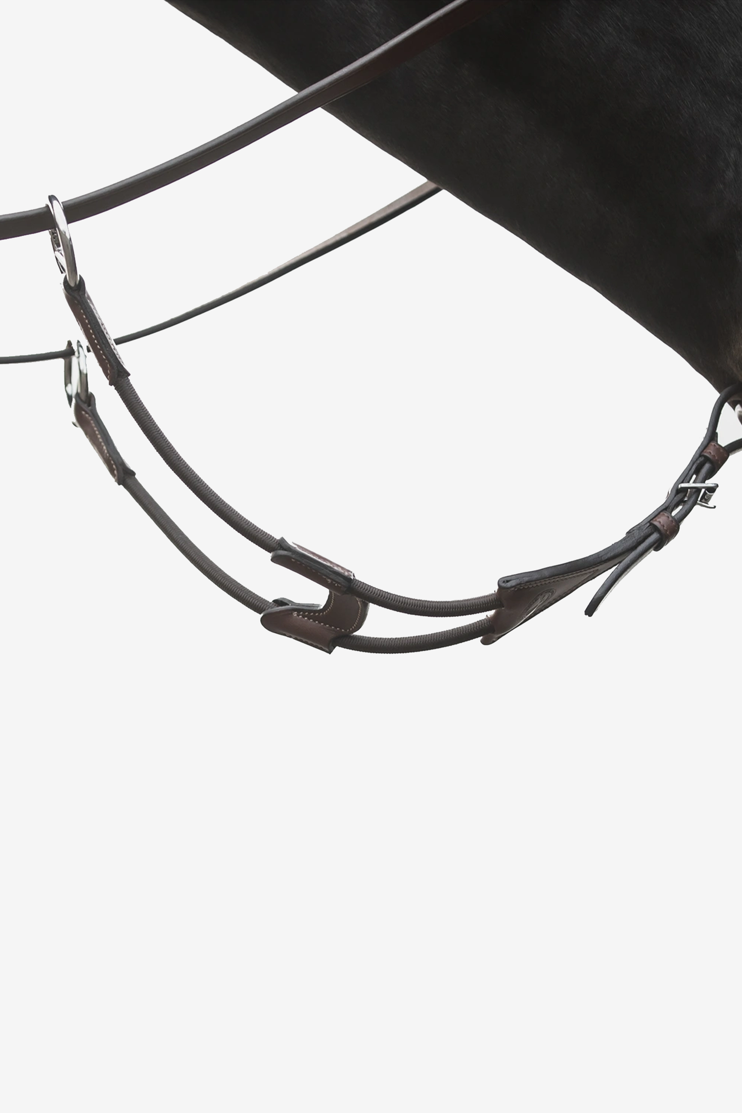 Der Martingal ist mit Fokus auf Komfort und Funktionalität sorgfältig gestaltet und lässt sich einfach an jedes Pferd anpassen. Das weiche, hochwertig verarbeitete Leder wird mit silberfarbenen, rostfreien Schnallen kombiniert und bietet so eine lange Haltbarkeit und ein exklusives Finish.