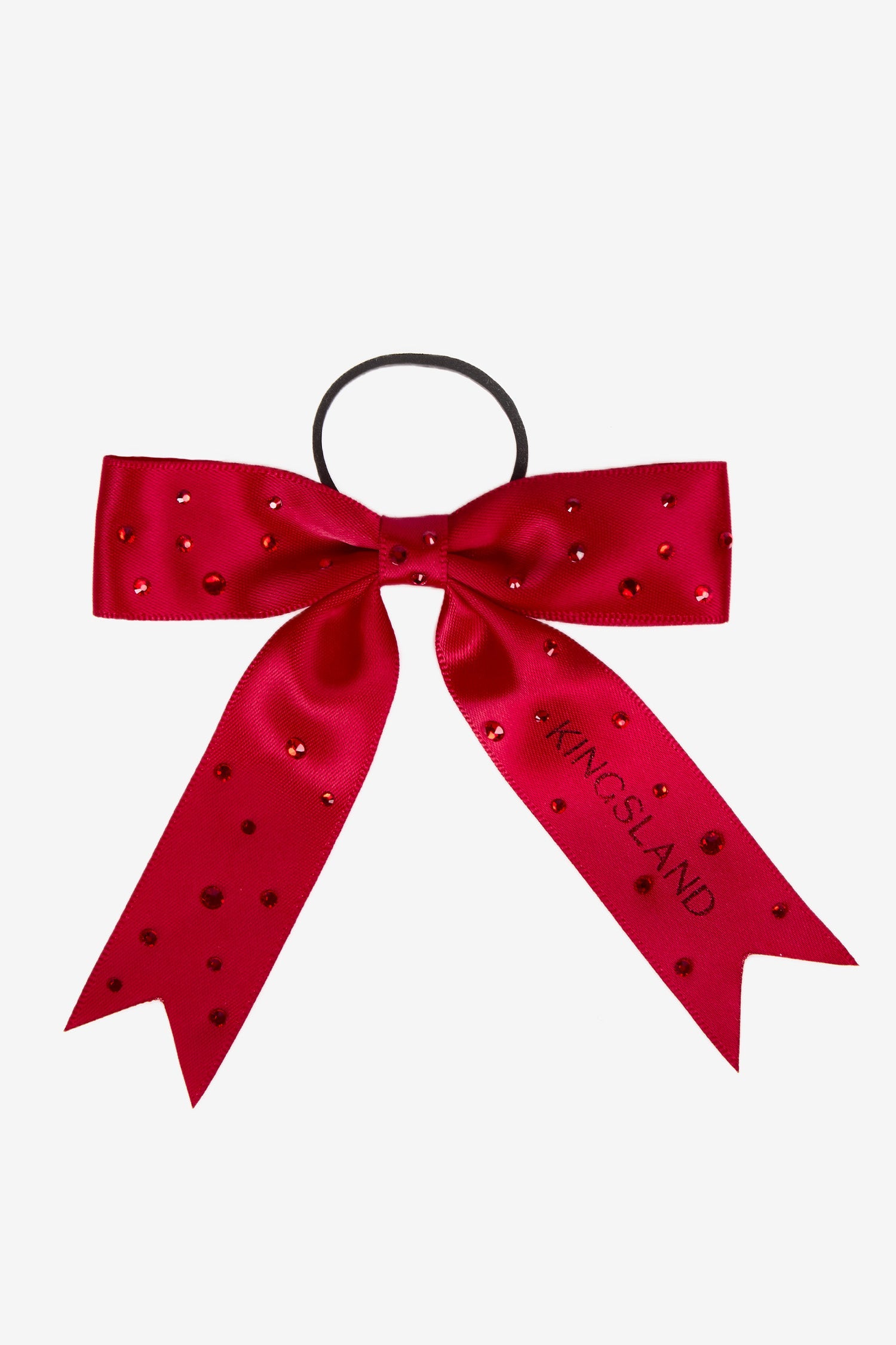 Die Schleife wird einfach mit einem Gummiband befestigt, was sie praktisch und sicher im Wettkampf macht. Die rote Farbe in Kombination mit dezenten Kingsland-Details macht sie zu einem Blickfang und passt dennoch harmonisch zum restlichen Equipment.